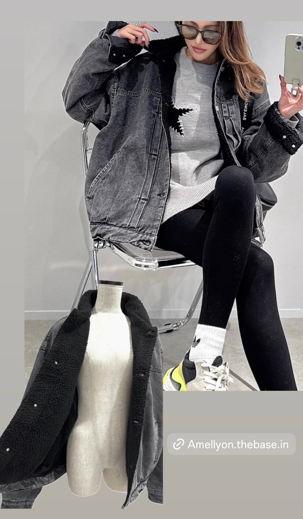 denim裏ボアJKにステッチSTAR knitグレーのご紹介です♪