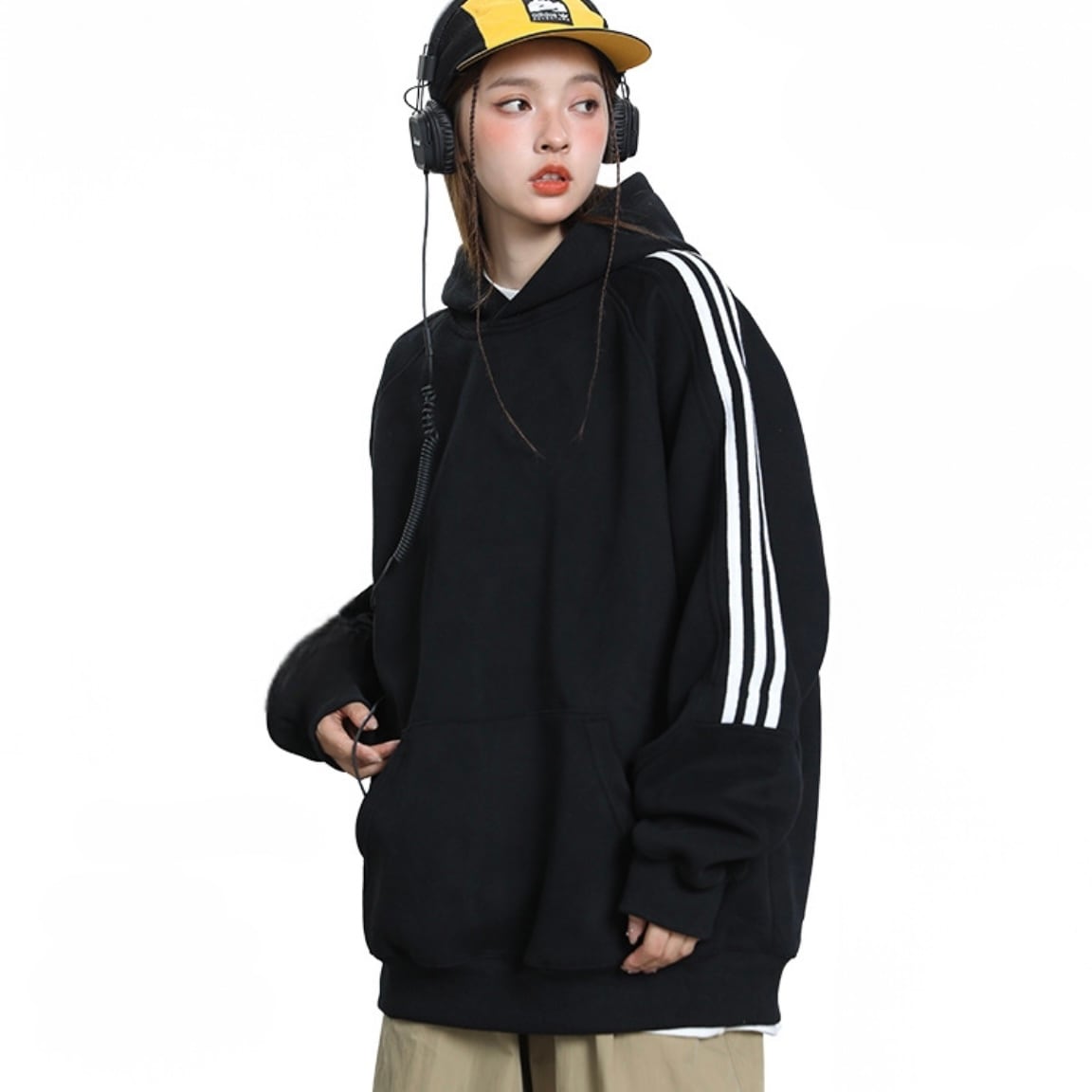 袖ラインヘビーウエイトBIGパーカー/ブラック