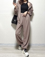 ボトムスは裾にアジャスターがあるのでジョガーパンツ仕様とワイドパンツ仕様、お好きなシルエットで履いていただけます
