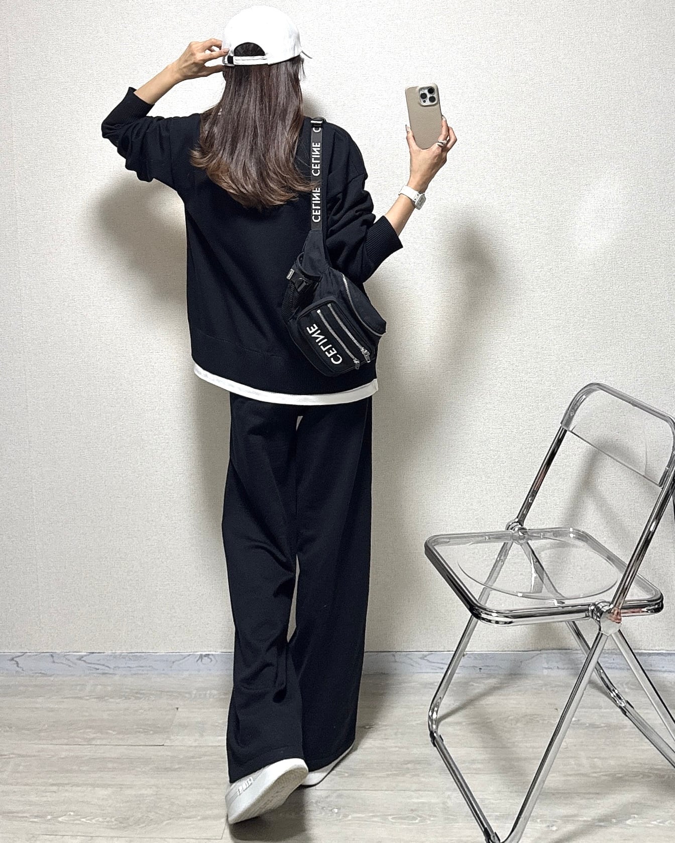 重ね着風のトップスとワイドボトムスのセットアップ商品です