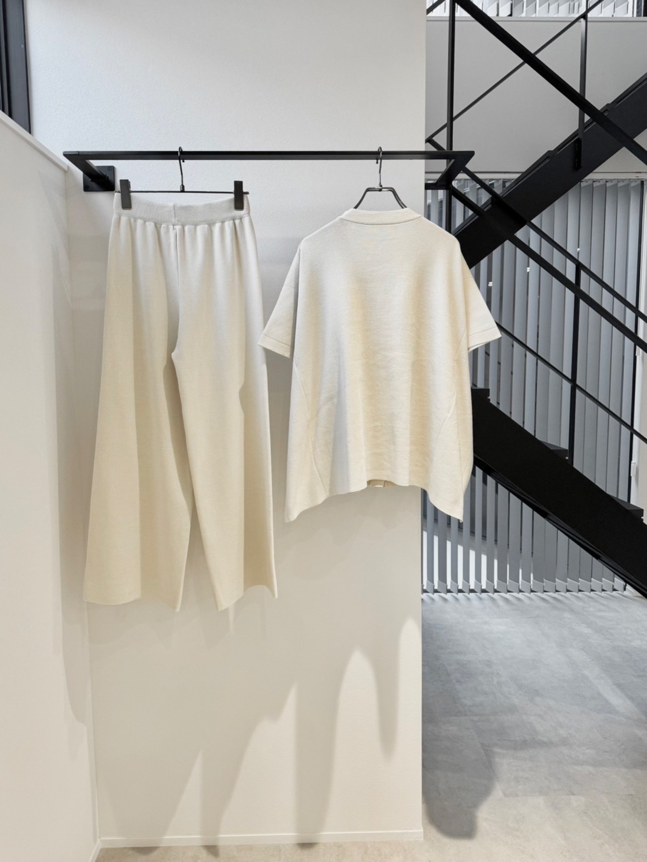 サマーニットの軽やかさは、リラックスタイムやお出かけに最適な一着です。