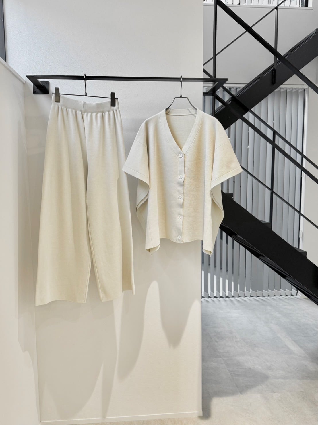 ドルマンポンチョ風ワイドknitカーデ×ワイドPT/セットアップ/アイボリー