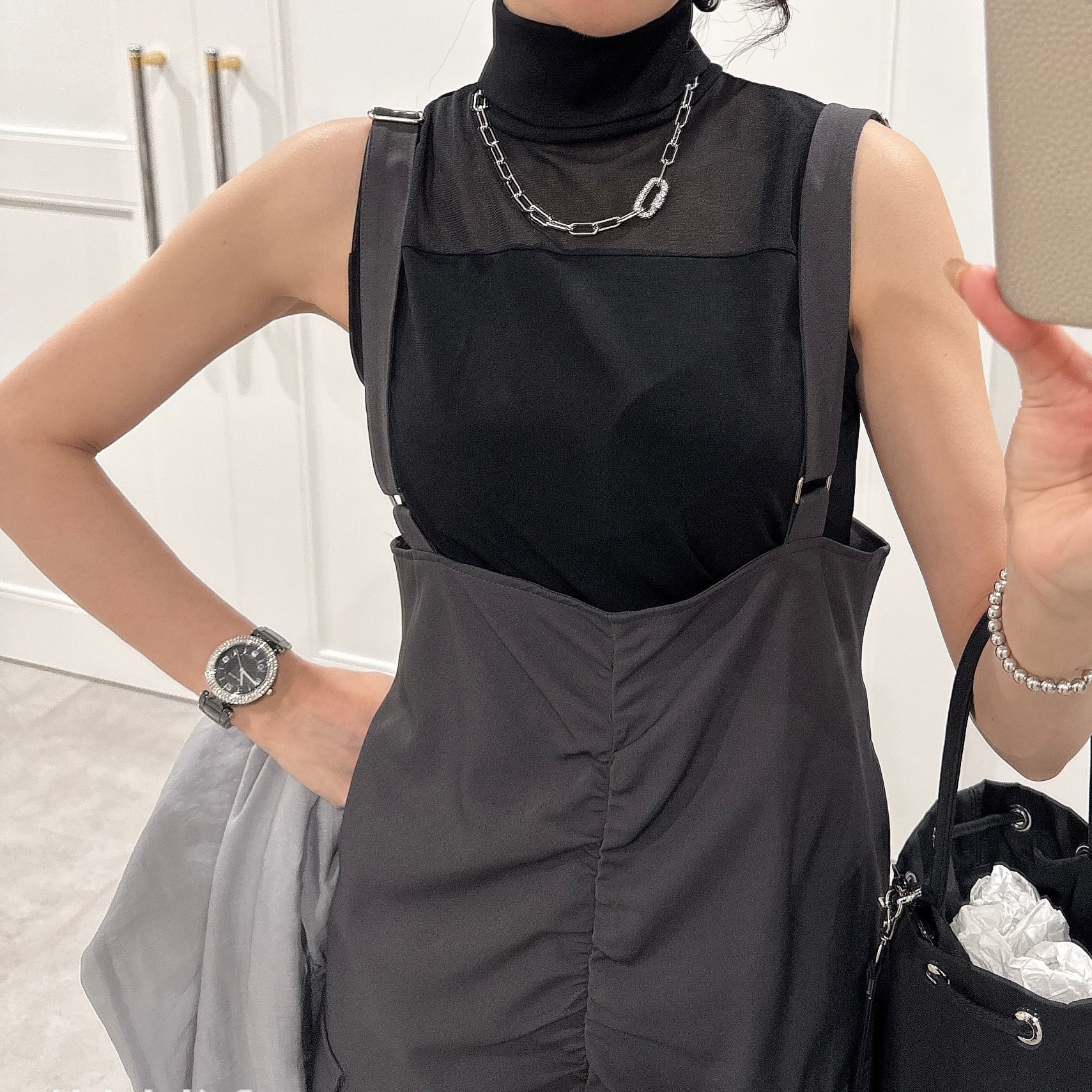 バスト上のみ切替えシアー素材でシンプルでもオシャレ映えする万能アイテムです