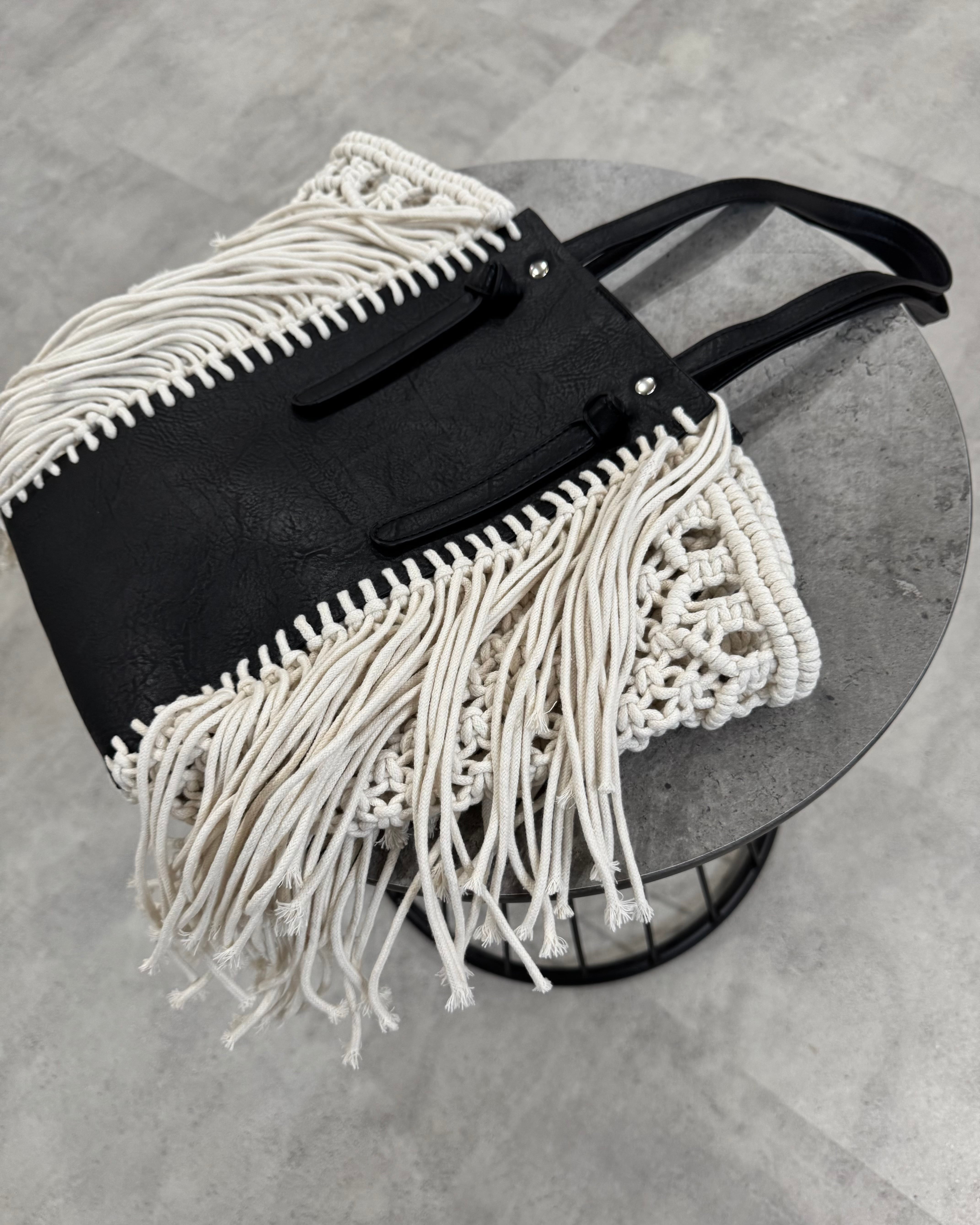 leather×フリンジ編み込みtote bag