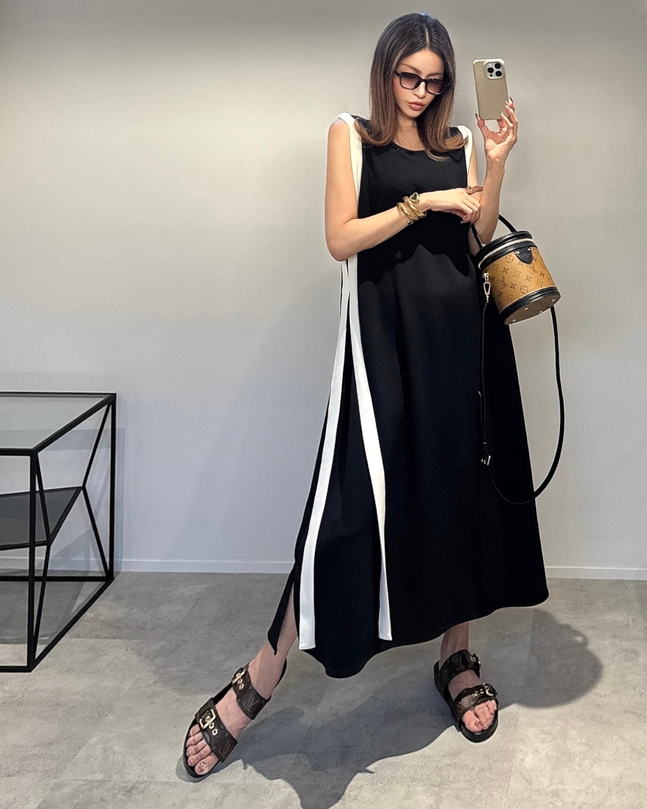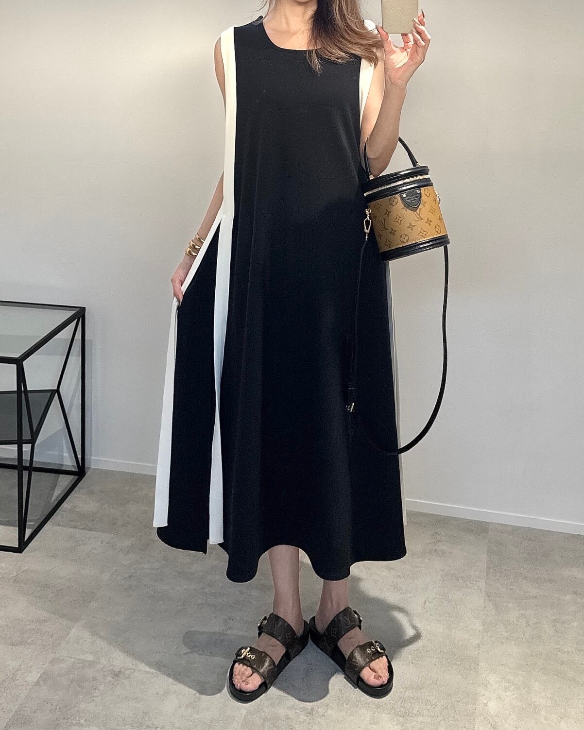 Aラインサイドバイカラーstringワンピース