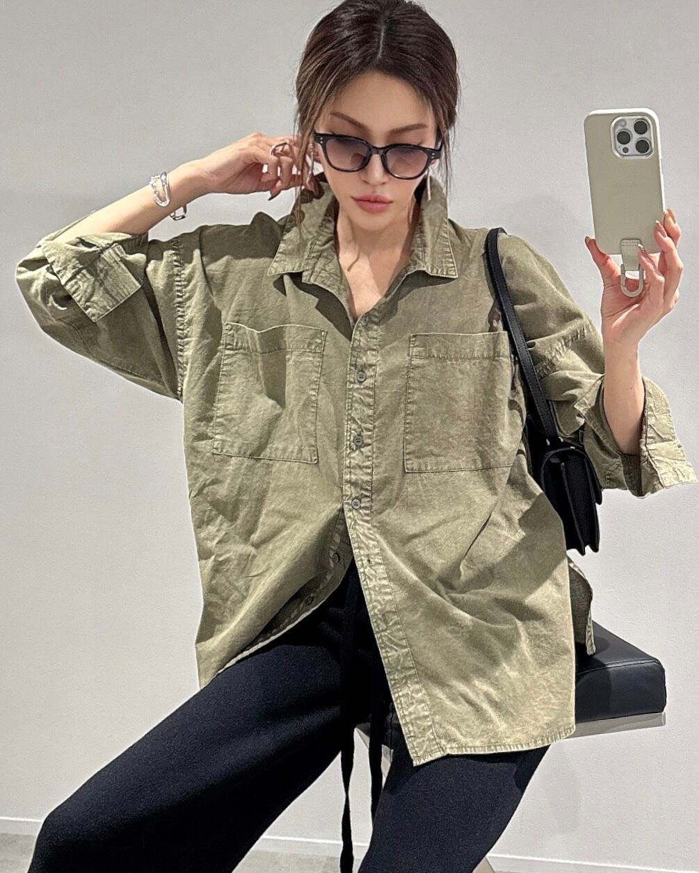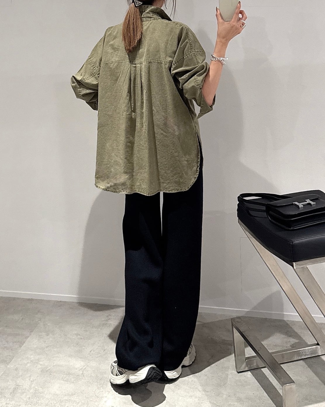 レギュラーカラーと胸ポケットデザインでカジュアルすぎずに着こなせます◎