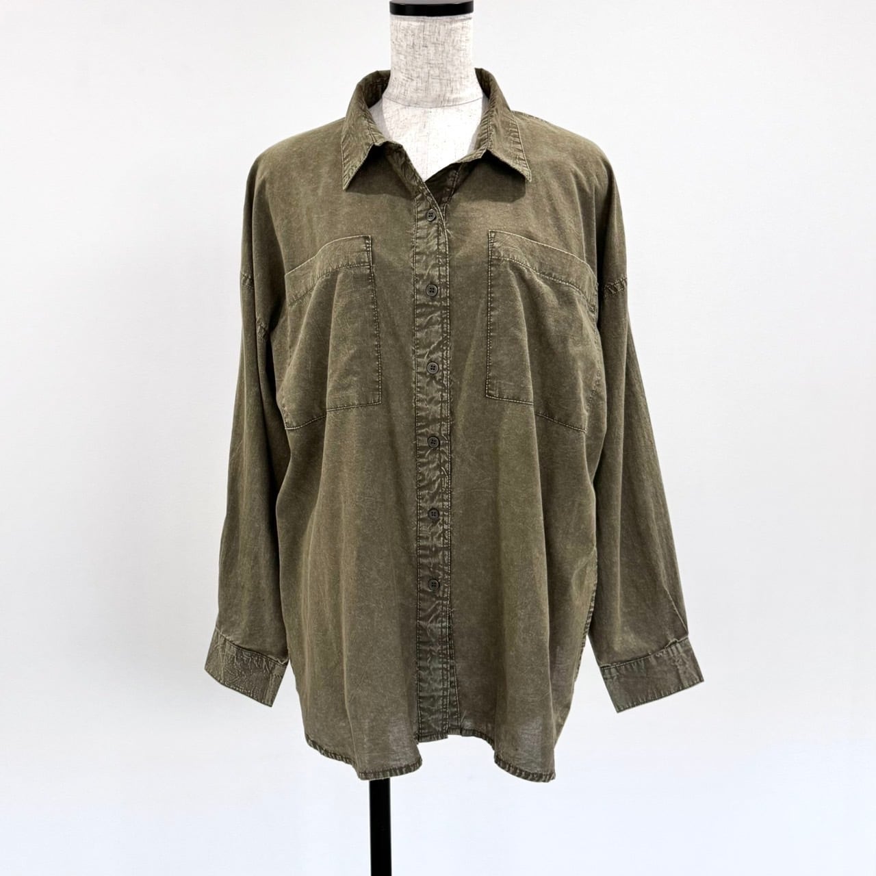 羽織るだけでムードをプラスしてくれる硫化染めの深みのある色合いとデニムのような独特な色ムラと色落ち感が魅力な薄手のシャツです