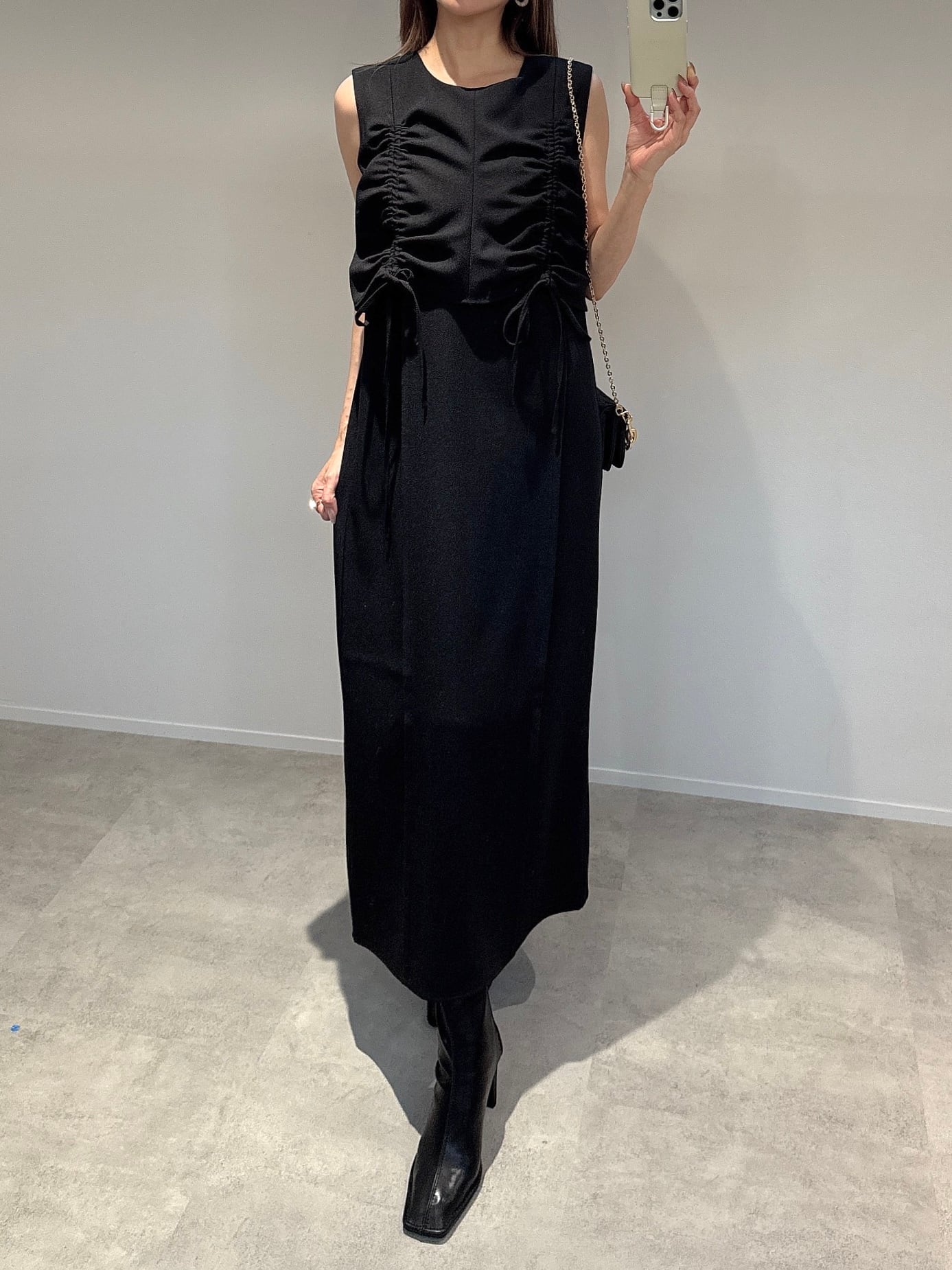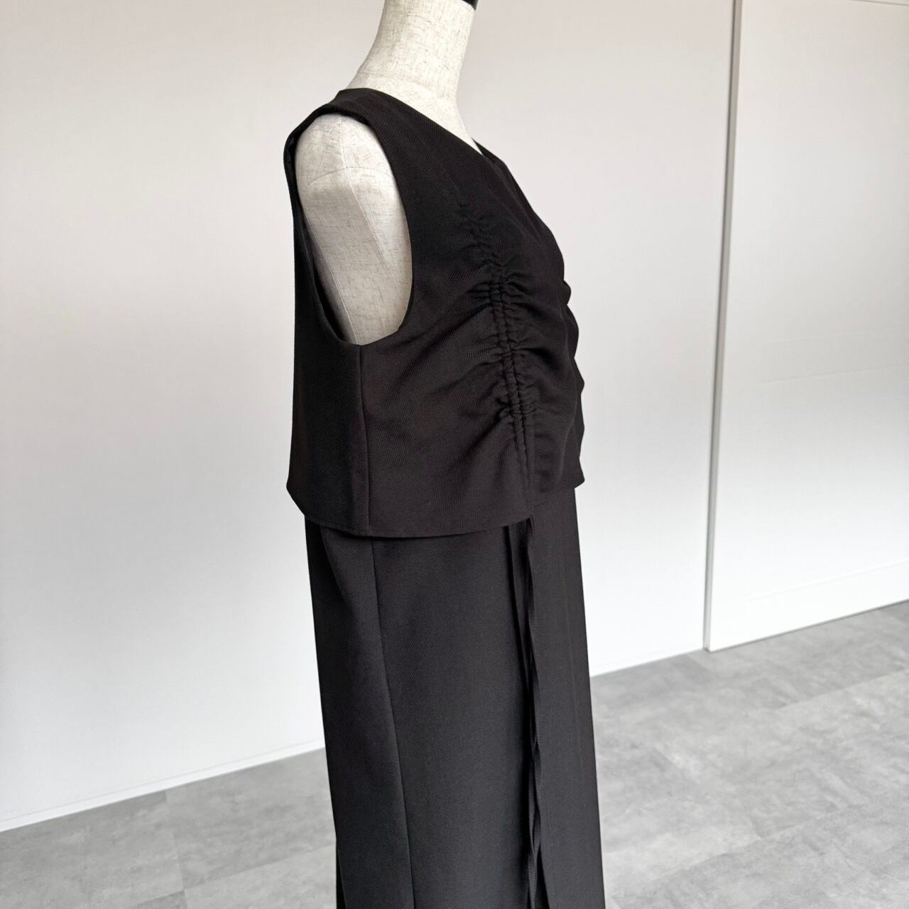 シャーリングがきいたこなれ感あるレイヤードワンピースです
