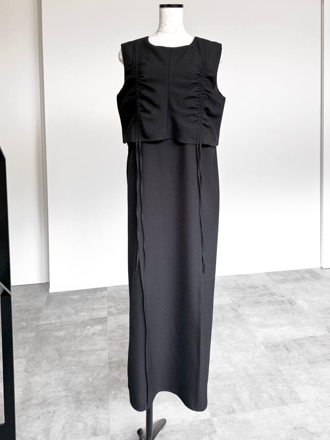 シャーリングレイヤード風ワンピース/ブラック