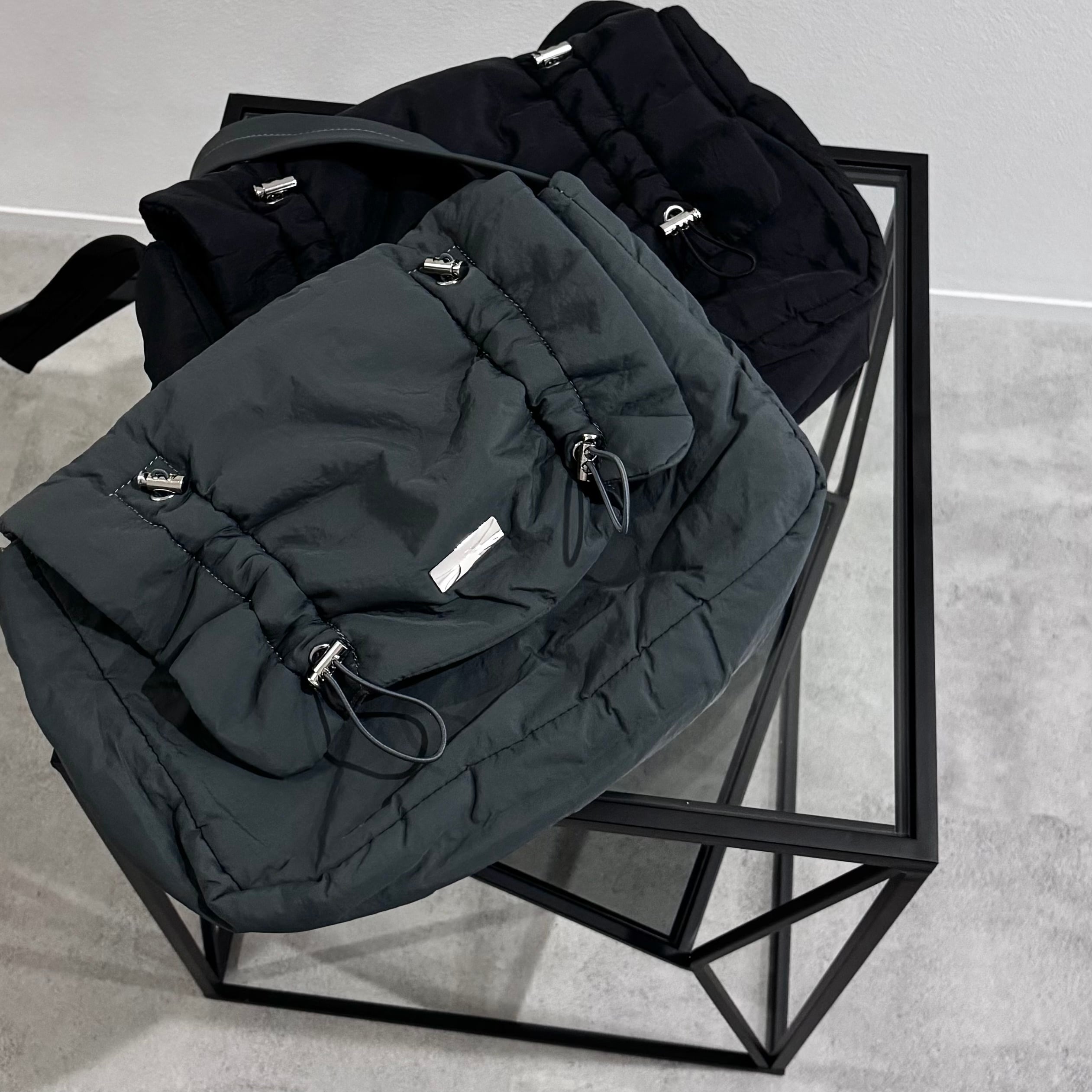 フロントギャザーがポイントになった撥水加工が嬉しいパファーバックです