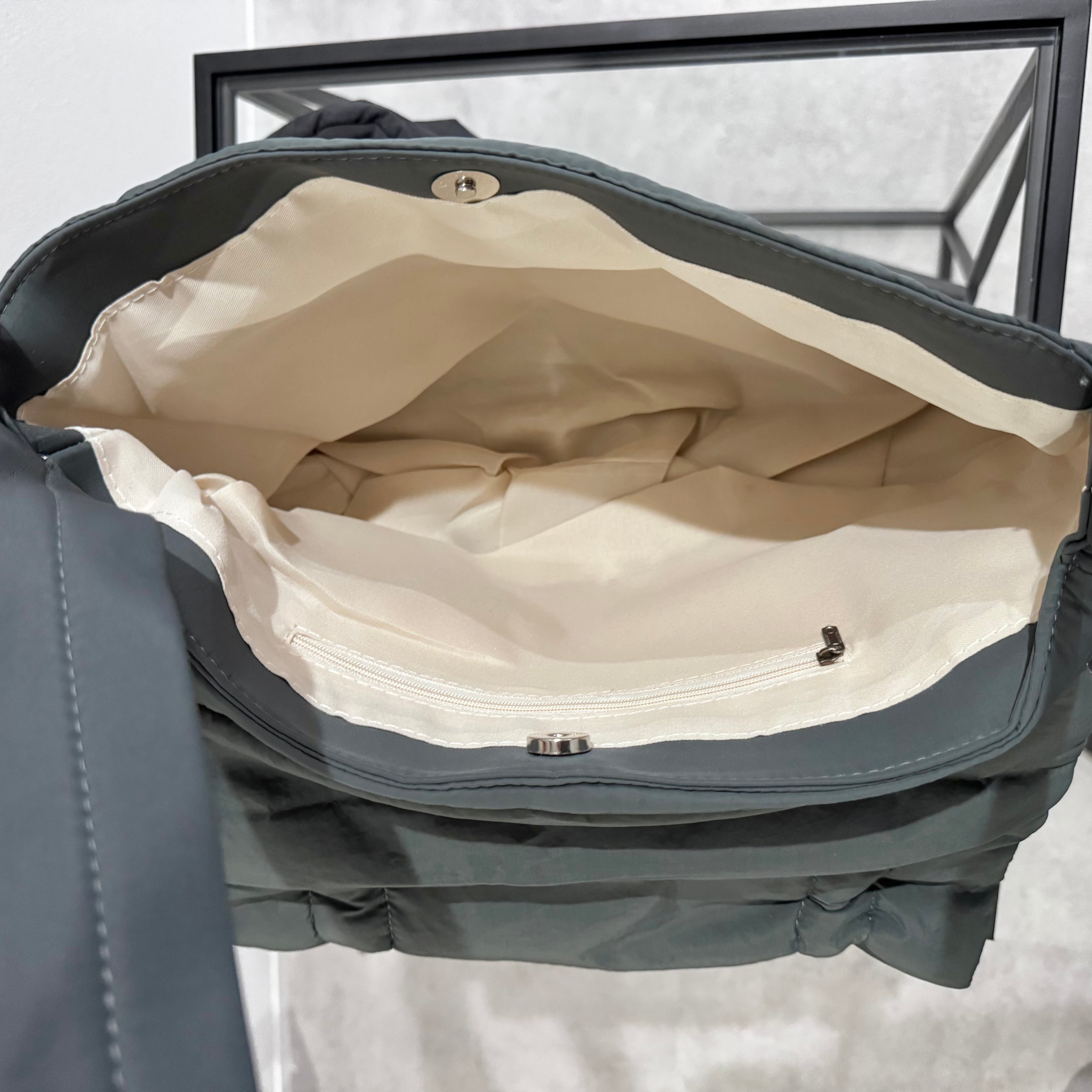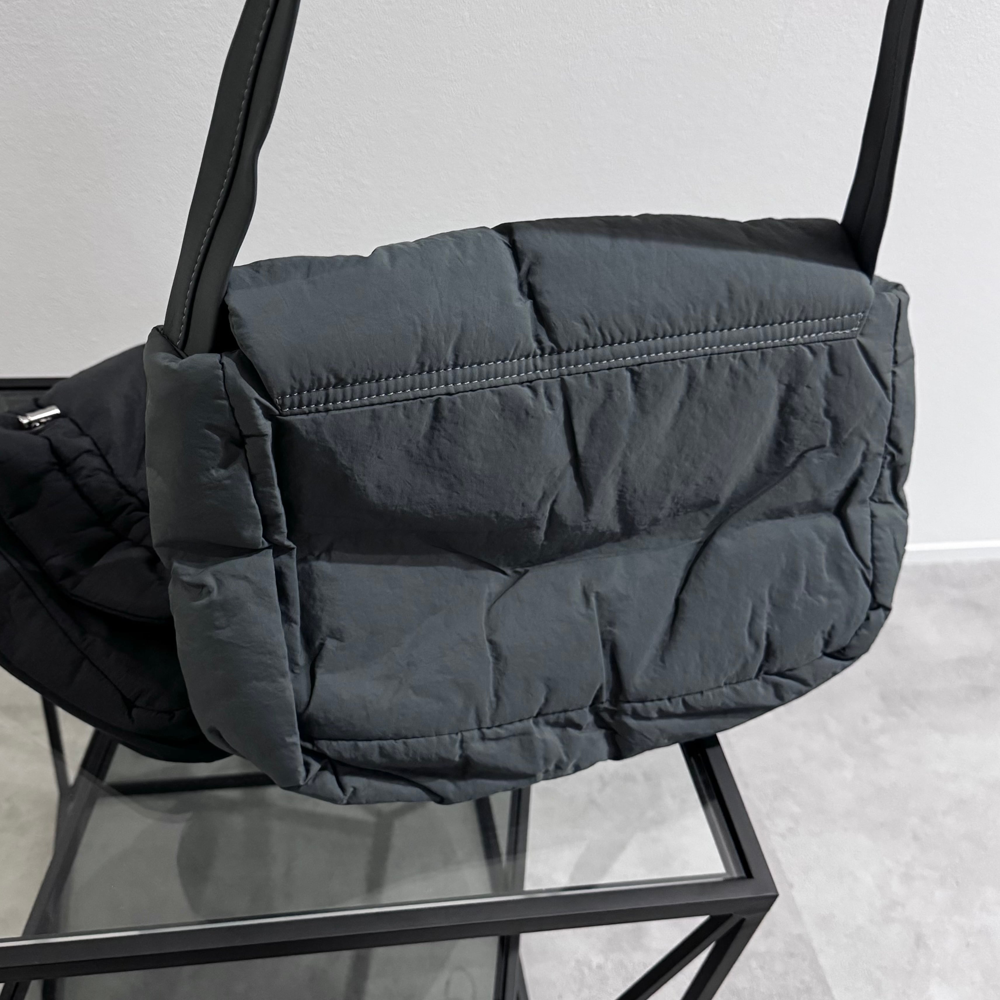 撥水中綿ドロストシャーリング軽量ショルダーbag/チャコール
