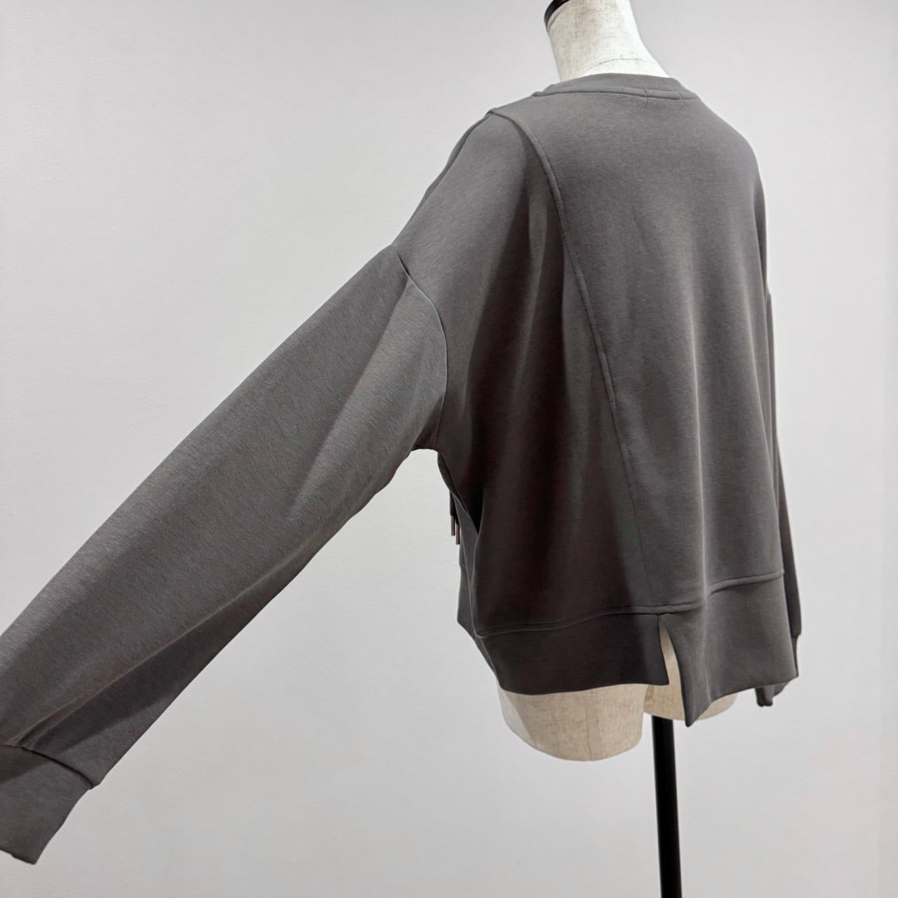 異素材BIGポケットstringスウェットプルオーバー/チャコール