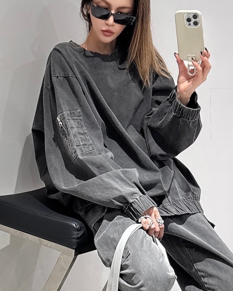 ピグメント加工MA-1袖 ミリタリーBIGプルオーバー/アッシュブラック