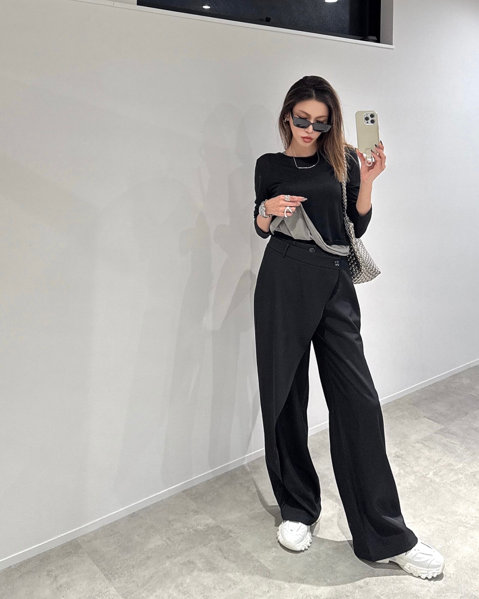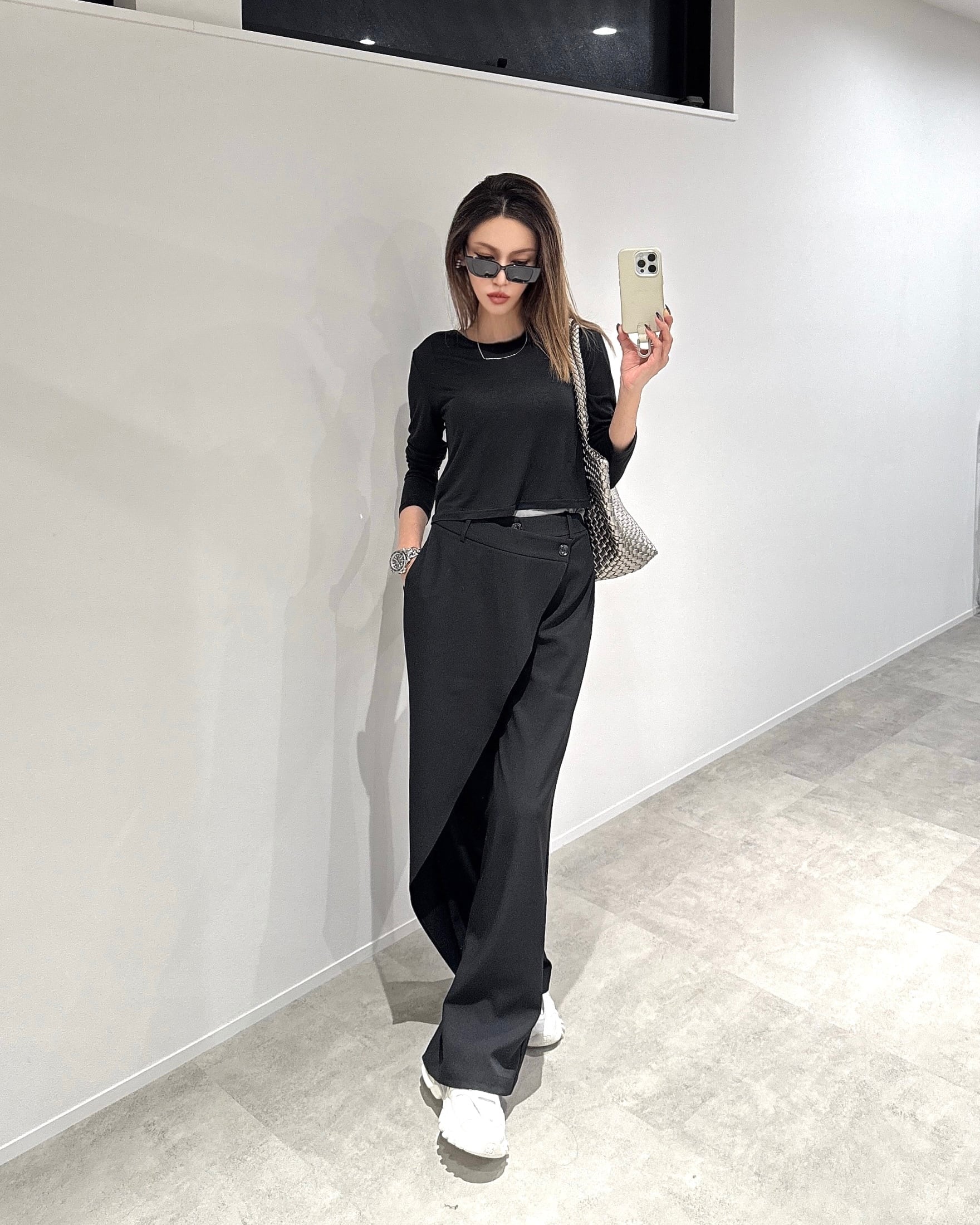 美シルエットに細見えするラップワイドパンツです