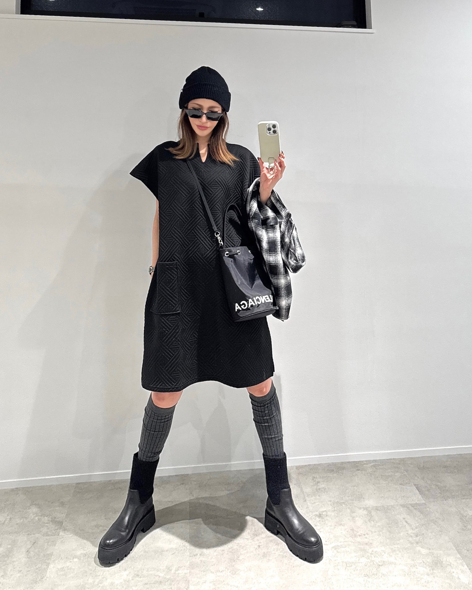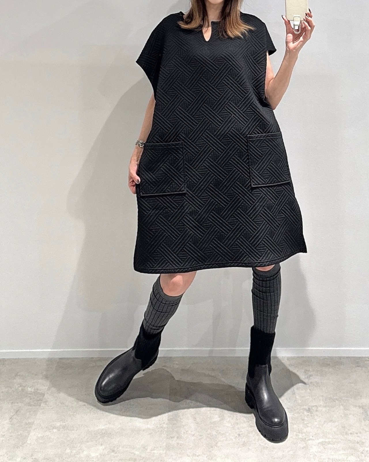 秋冬向けのしっかりとした肉厚生地のジャガードワンピースです
