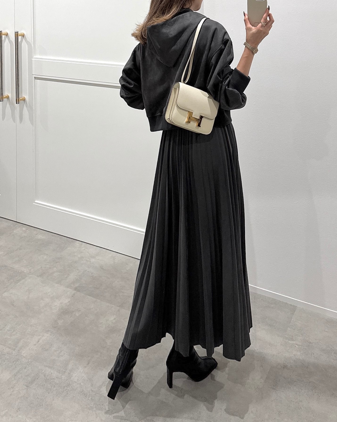 落ち着いた表情のスエードポンチ素材を使用したプリーツスカートです