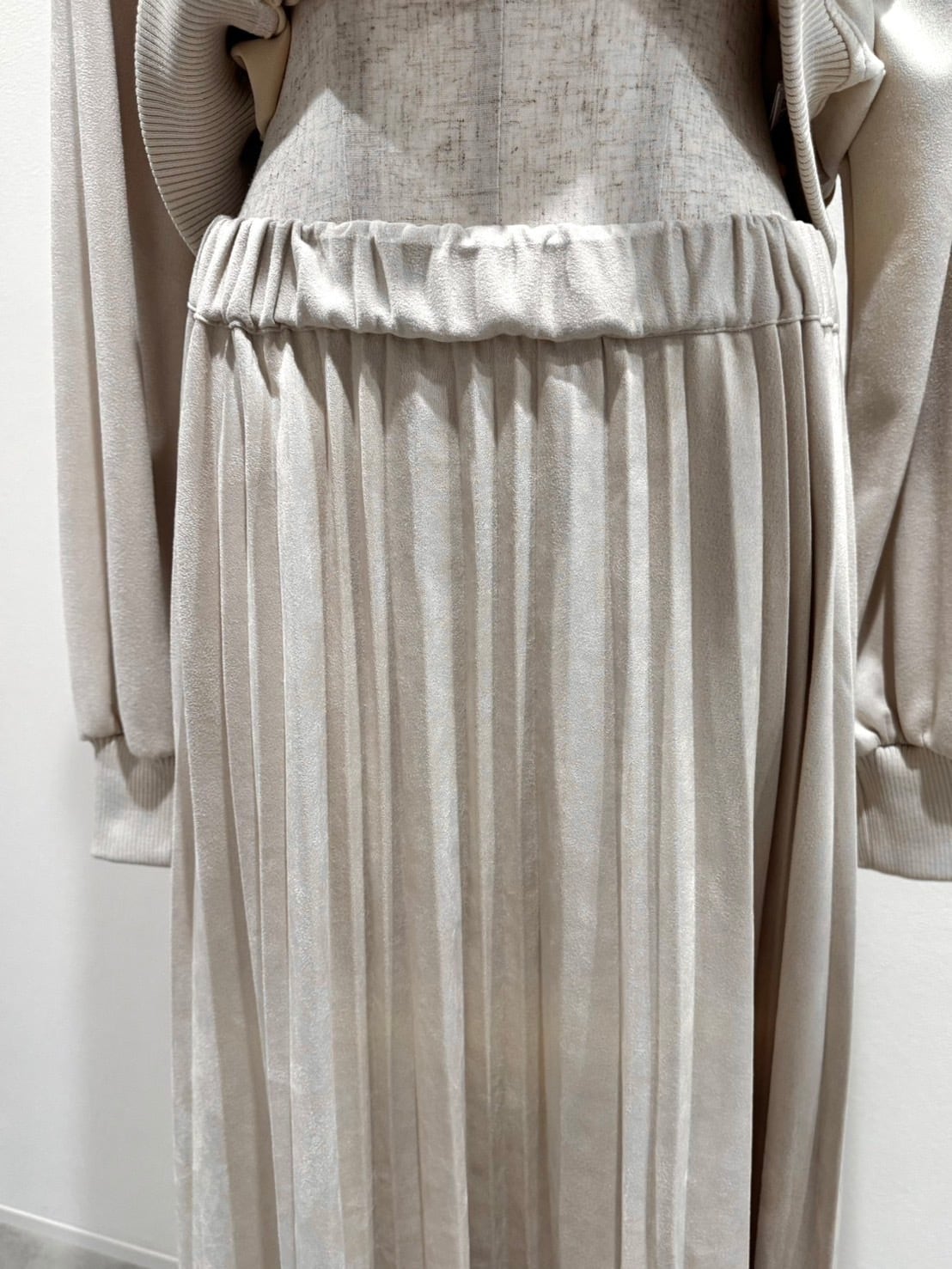 動くたびに揺れるプリーツがエレガントさを引き立てシーズンムードを高めてくれる一枚