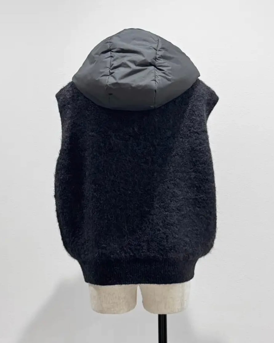 【 最終追加分 】中綿フード×柔らかボアKnitドッキングベスト