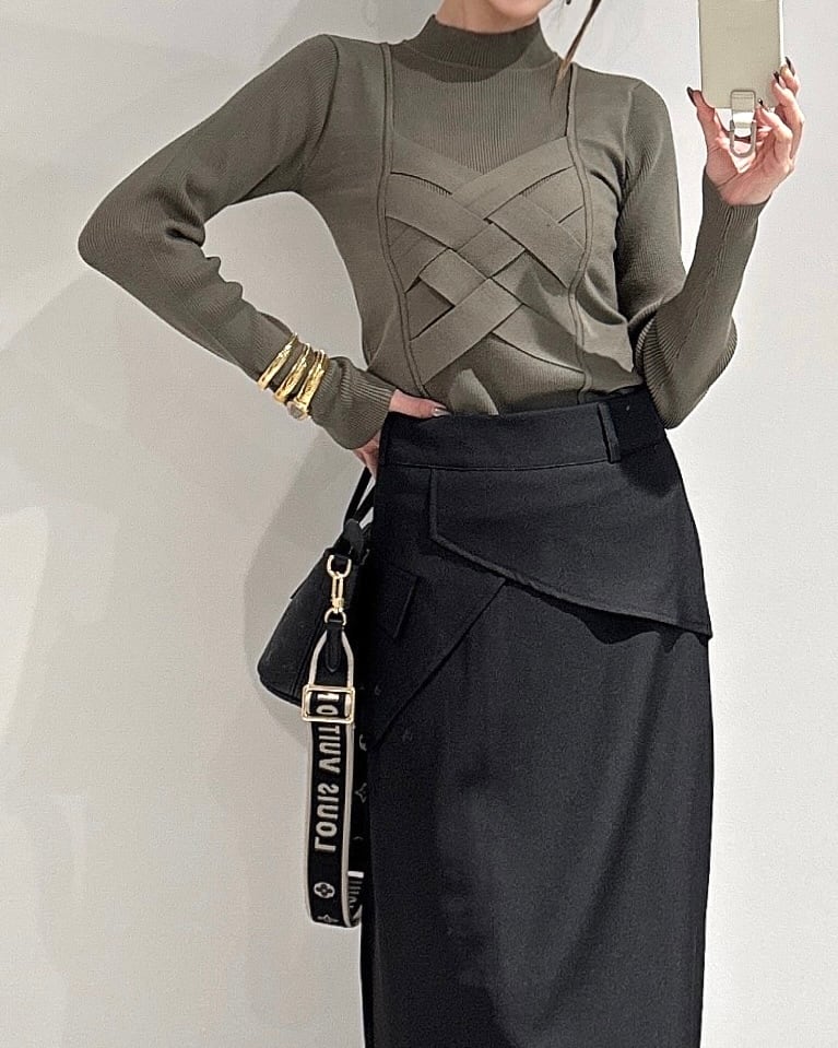 コルセットデザインリブ切り替えknit