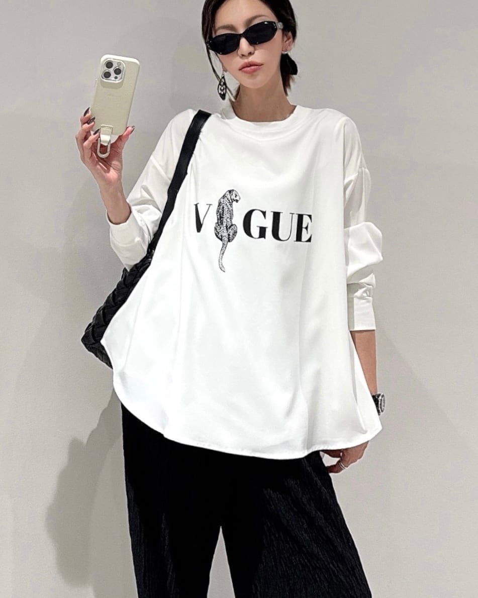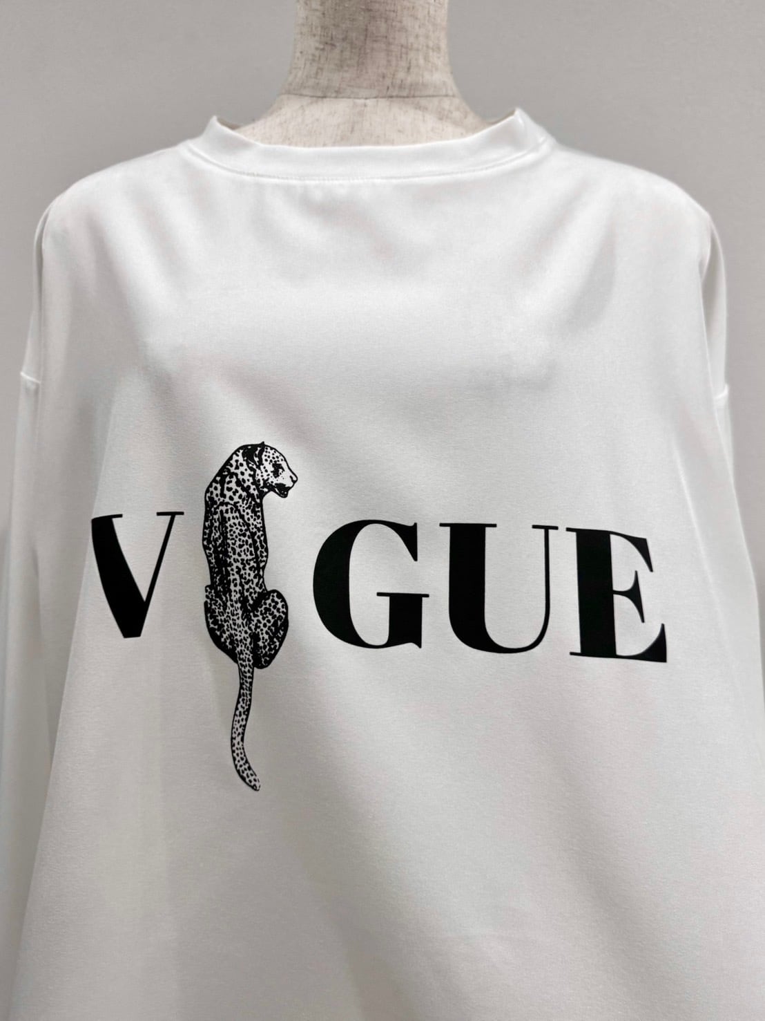 Aライン裾ラウンドヘムドレープLOGO leopardロンT