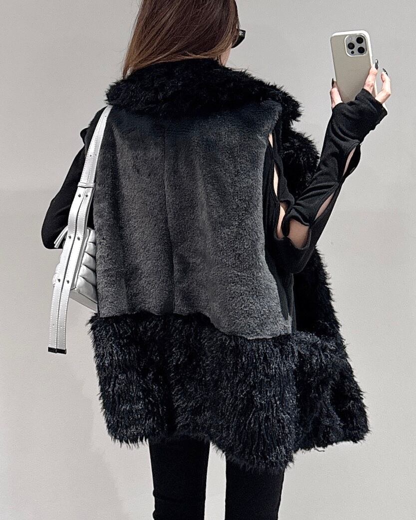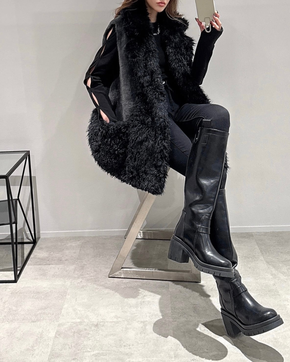 長い毛足と短い毛足の異なるファーを部分的に切り替えた周りと差のつく高級感あふれるファーベストです
