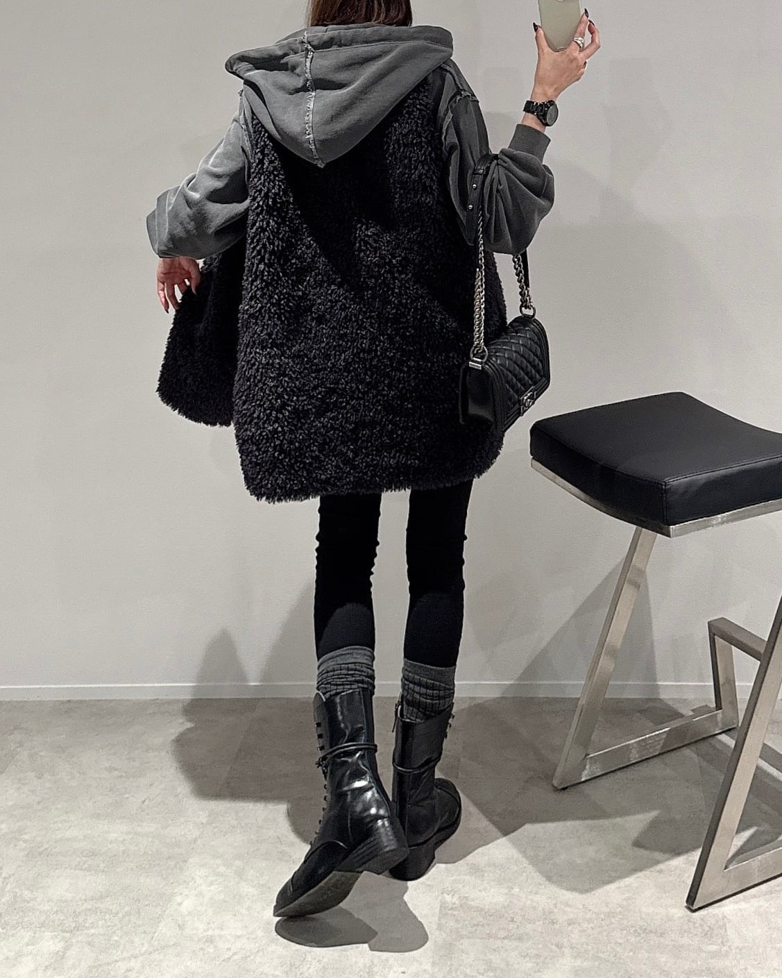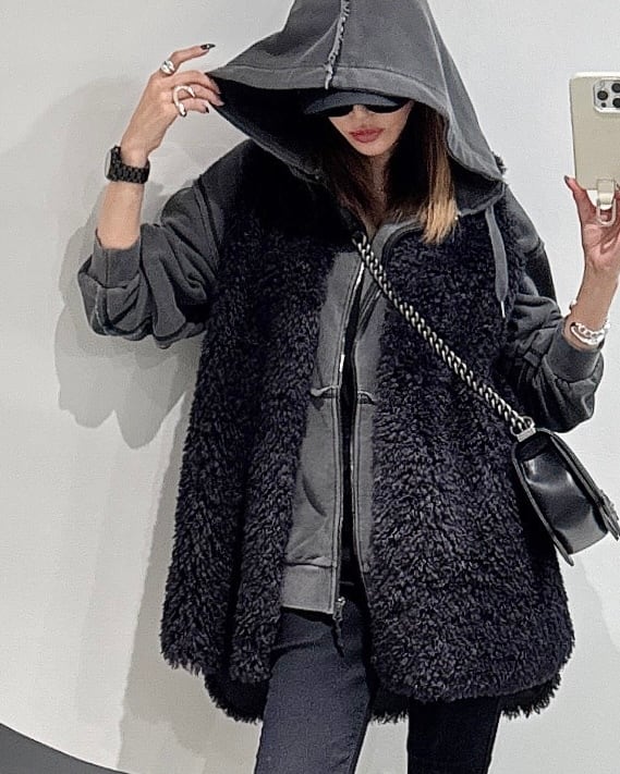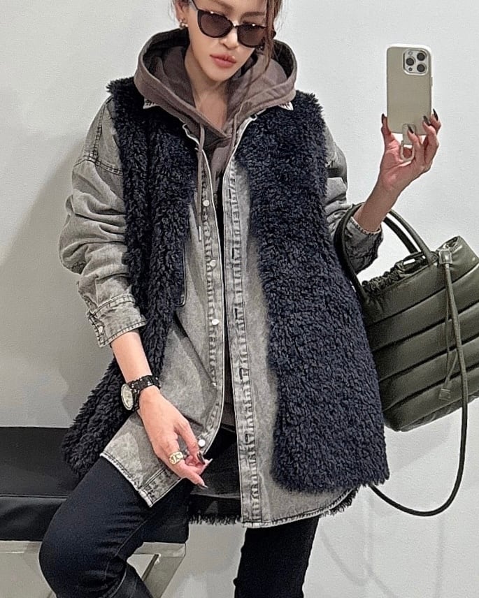 プードルファー×スウェード調リバーシブルベスト/チャコール