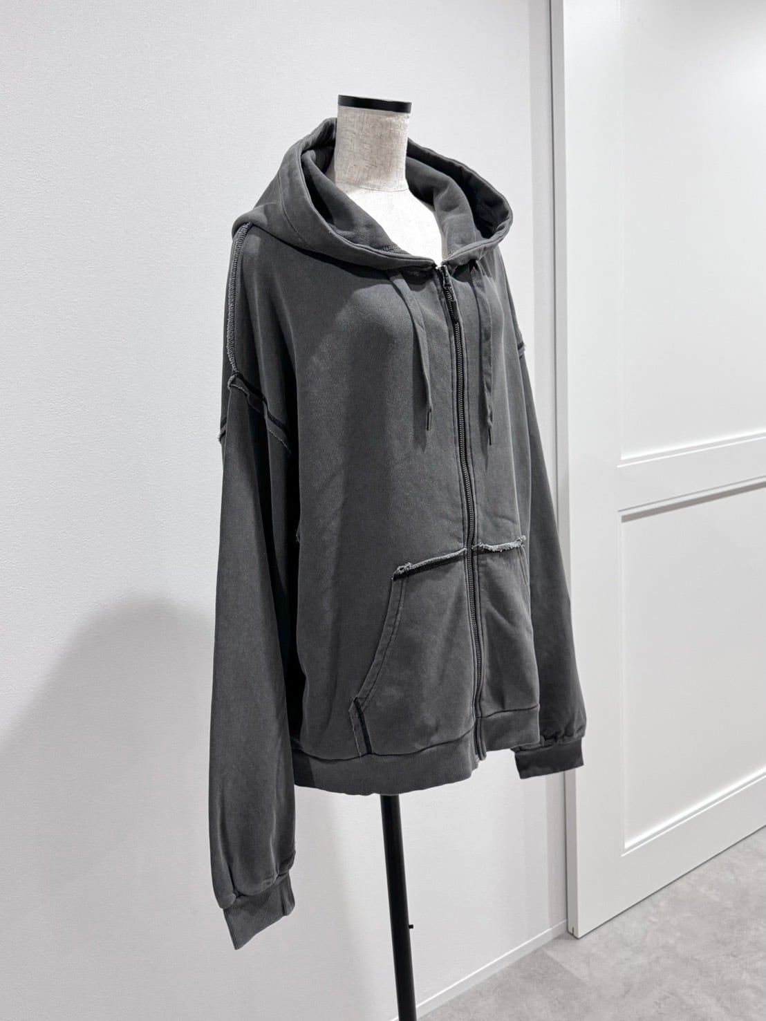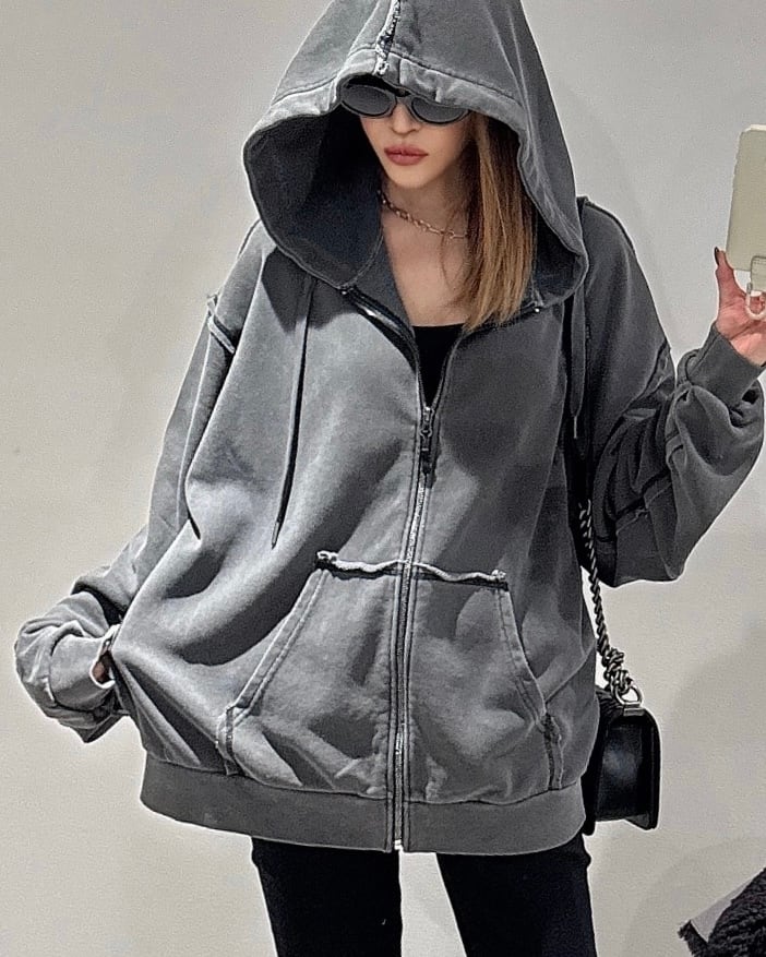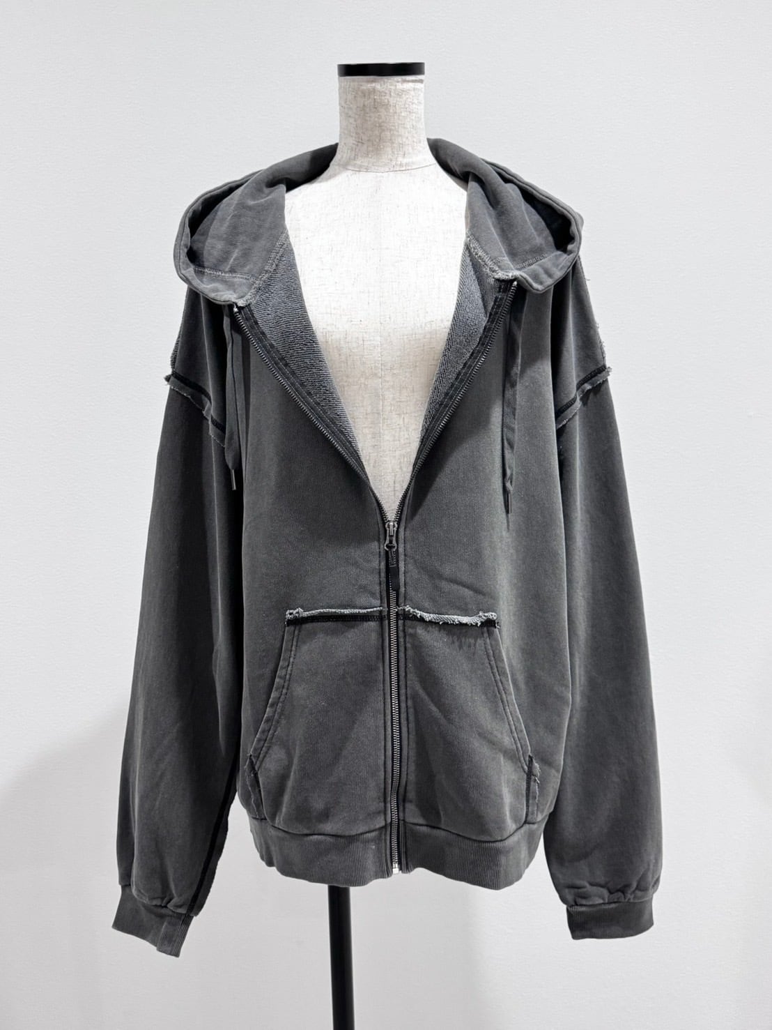 オーバーhoodeピグメント加工ステッチ立体zip PK