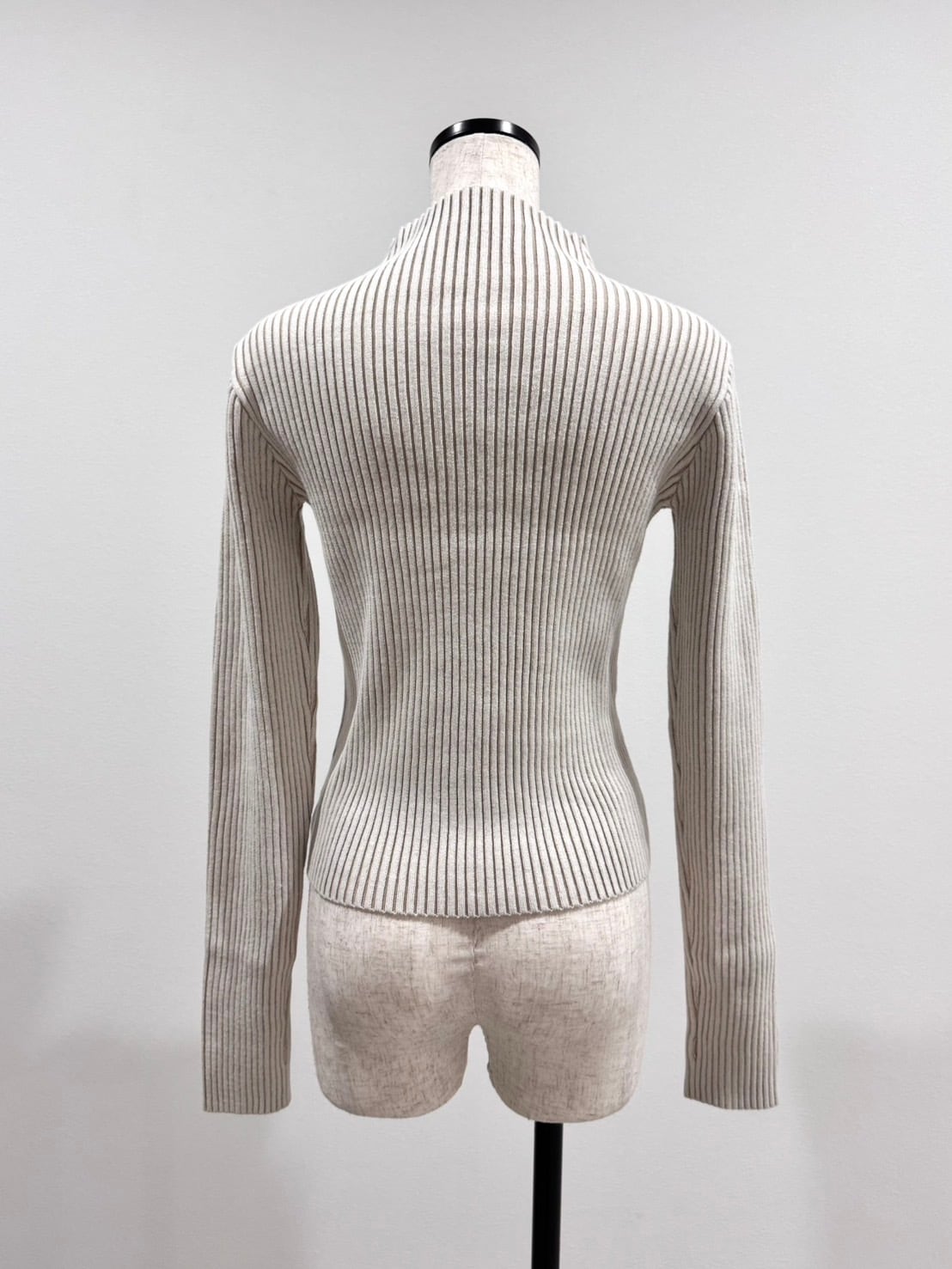 指空きブレーディングリブハイネックknit/アイボリー×モカ