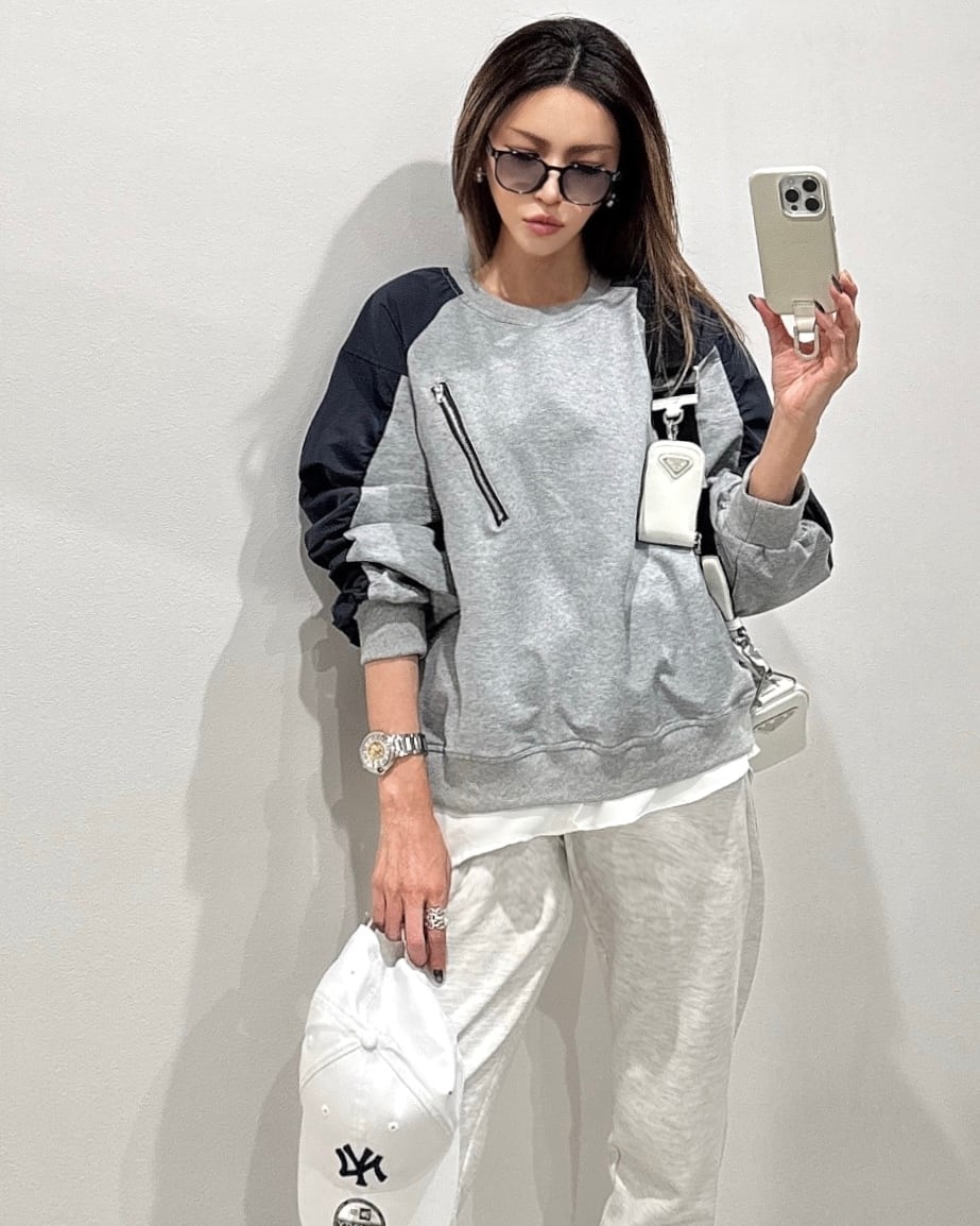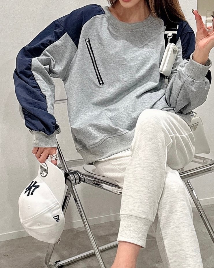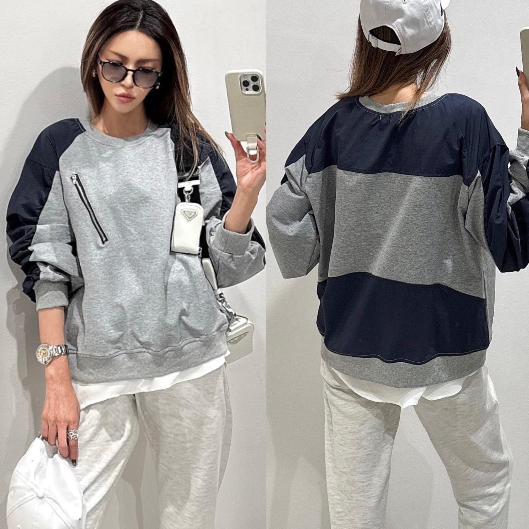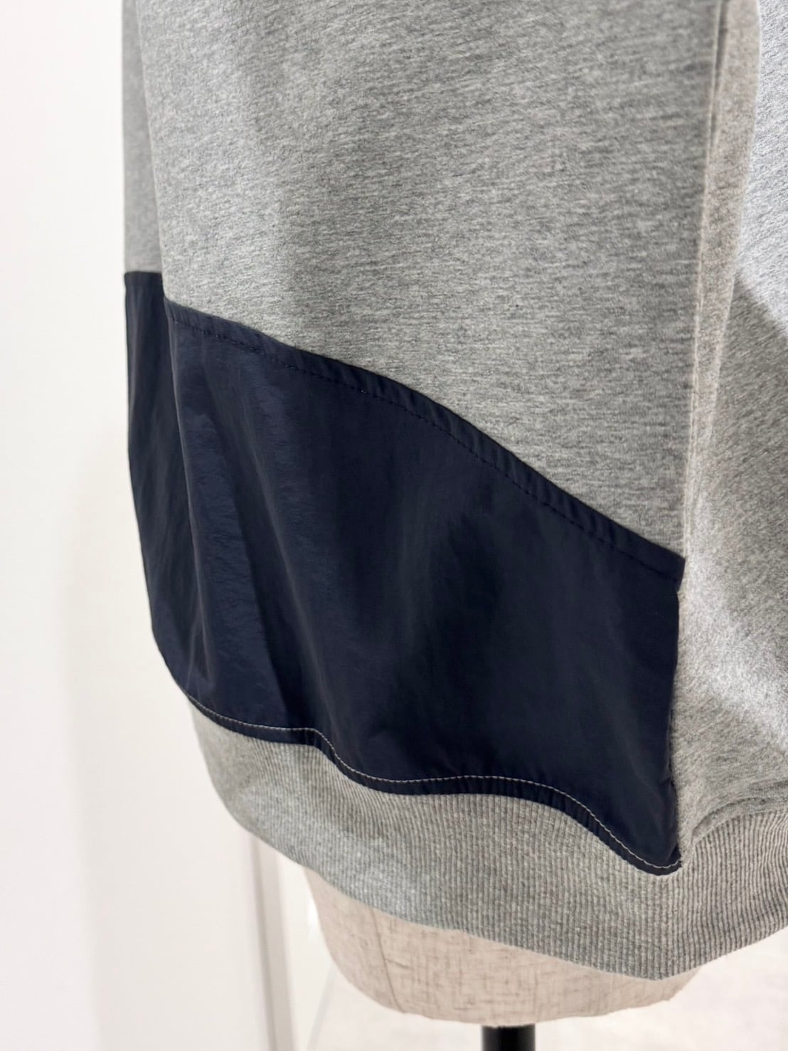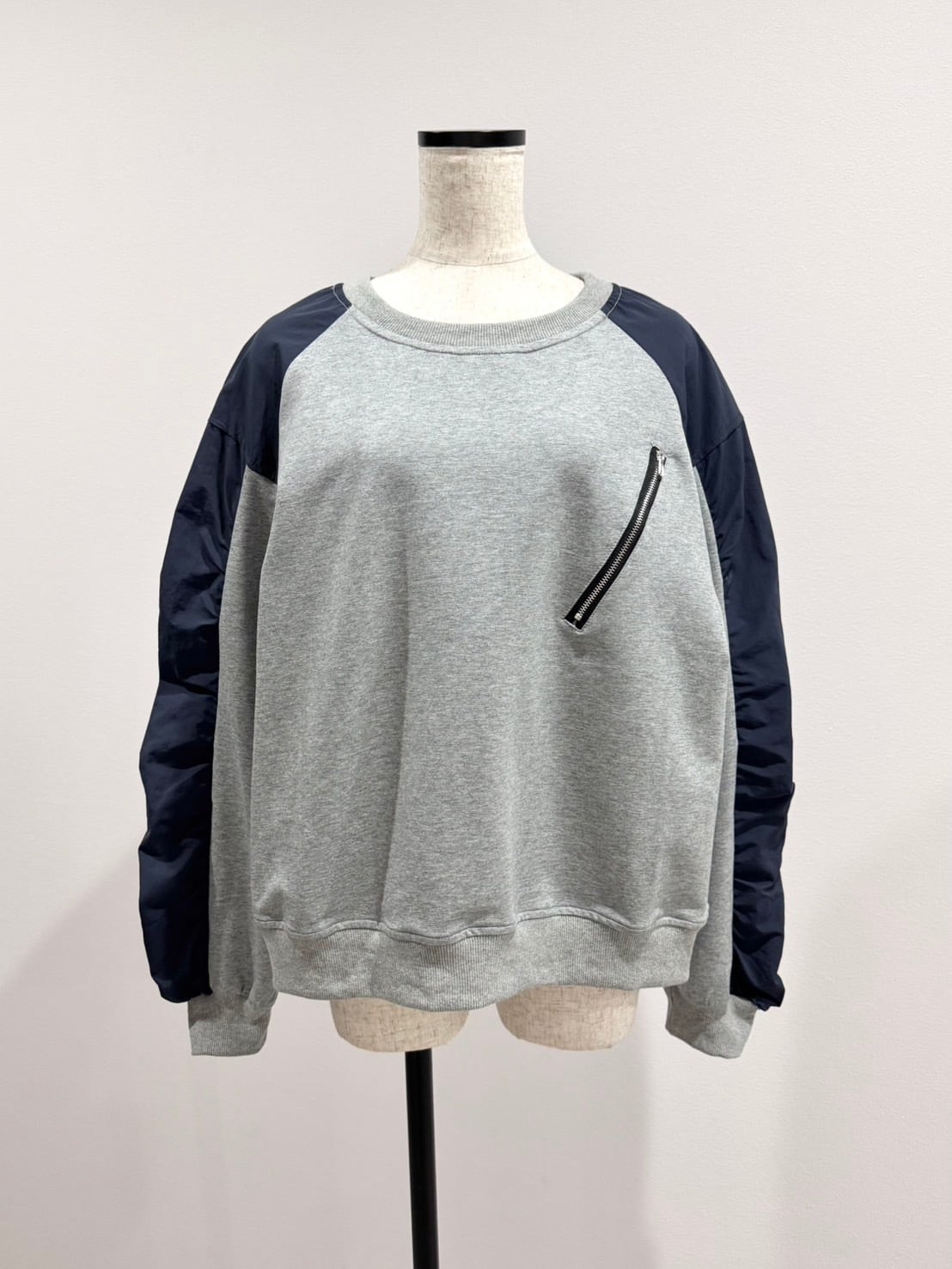 配色シャーリングsleeve異素材切替えSWプルオーバー /グレー