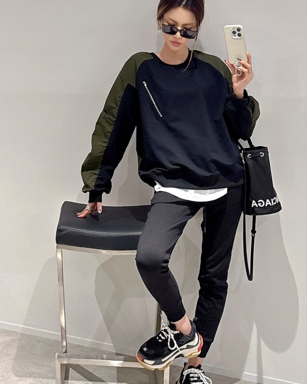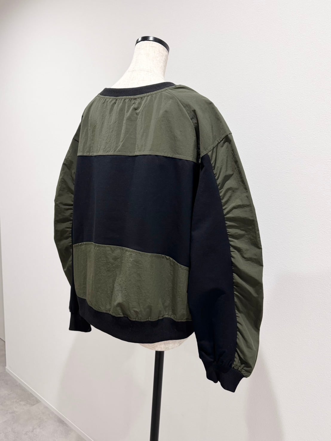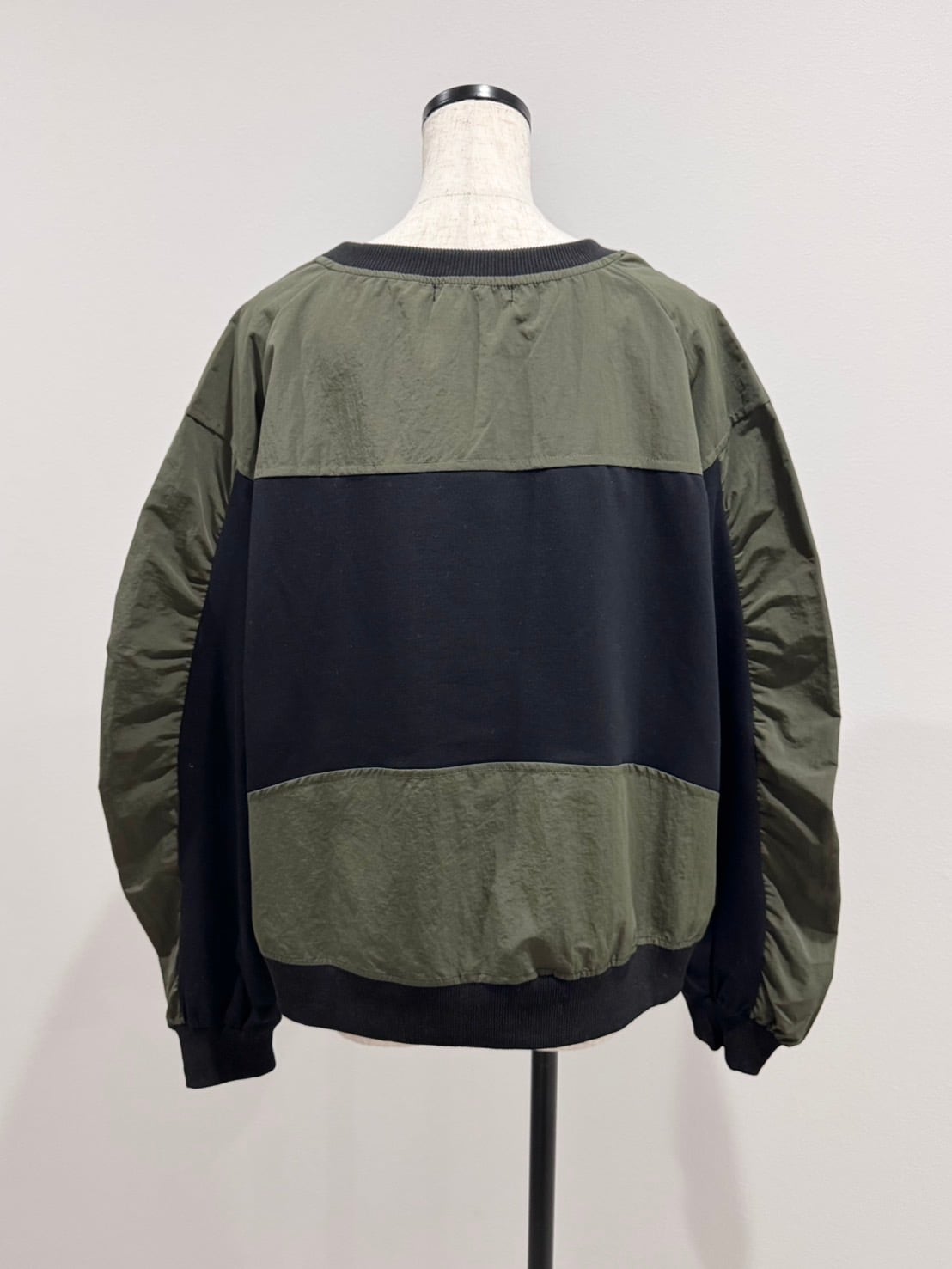 配色シャーリングsleeve異素材切替えSWプルオーバー /ブラック