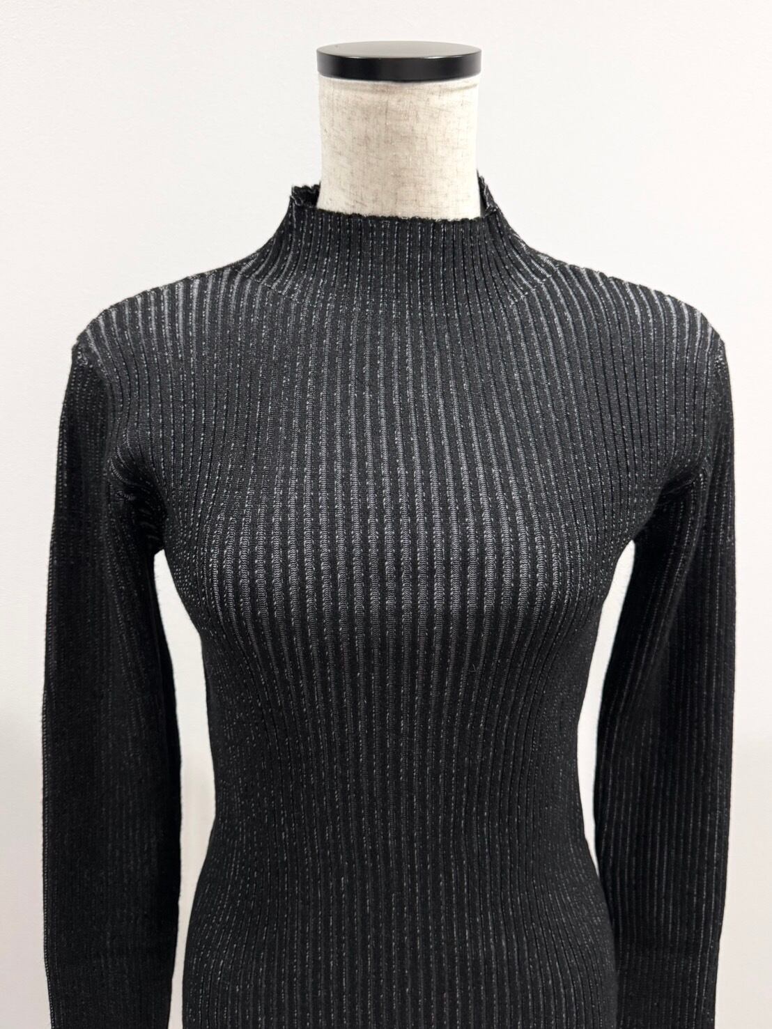 指空きブレーディングリブハイネックknit/ブラック×チャコール
