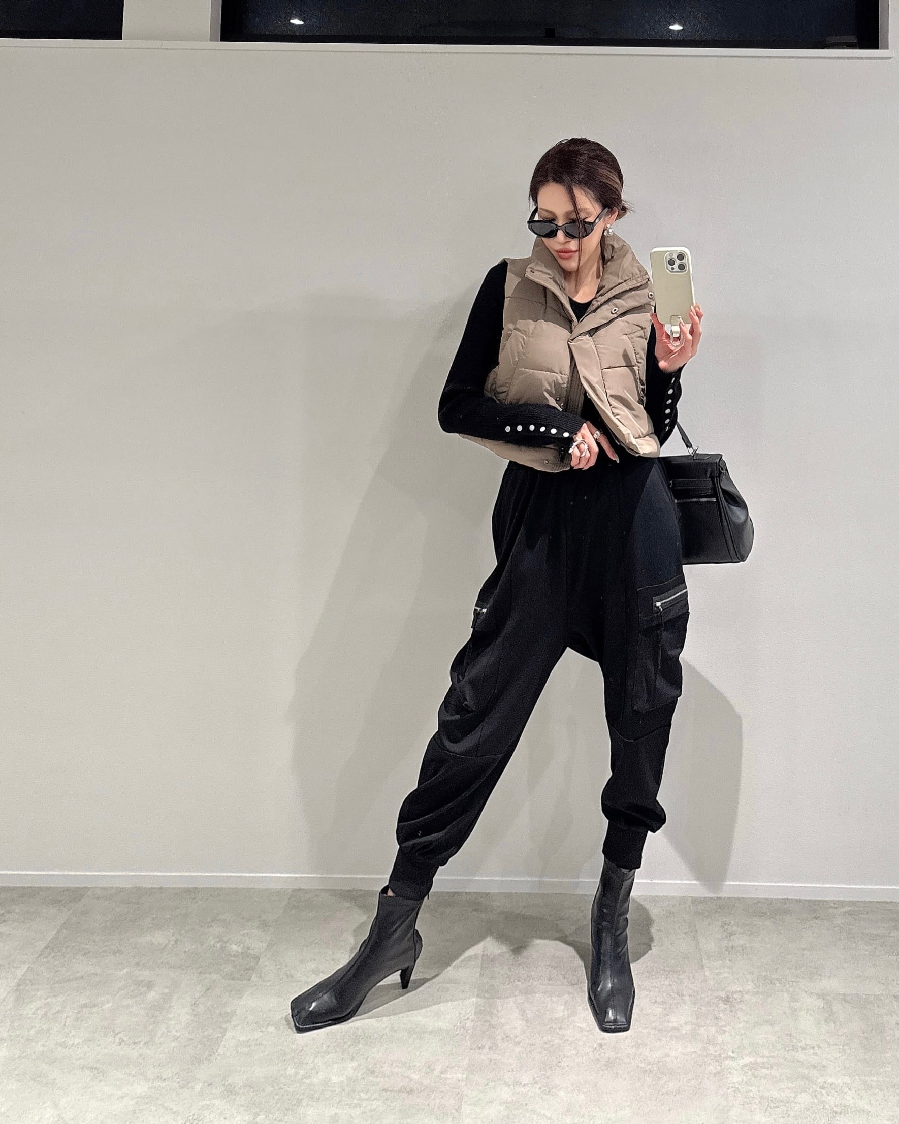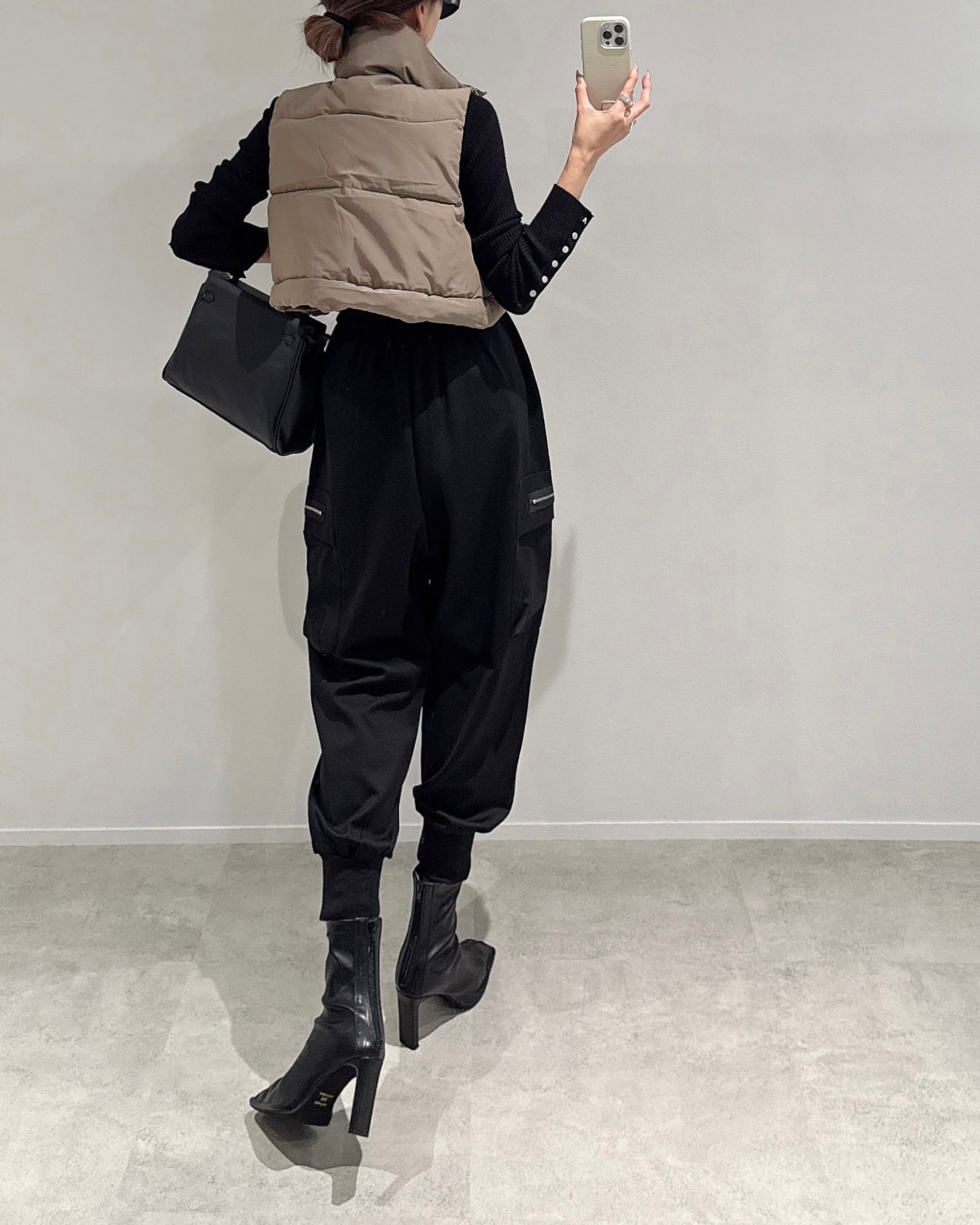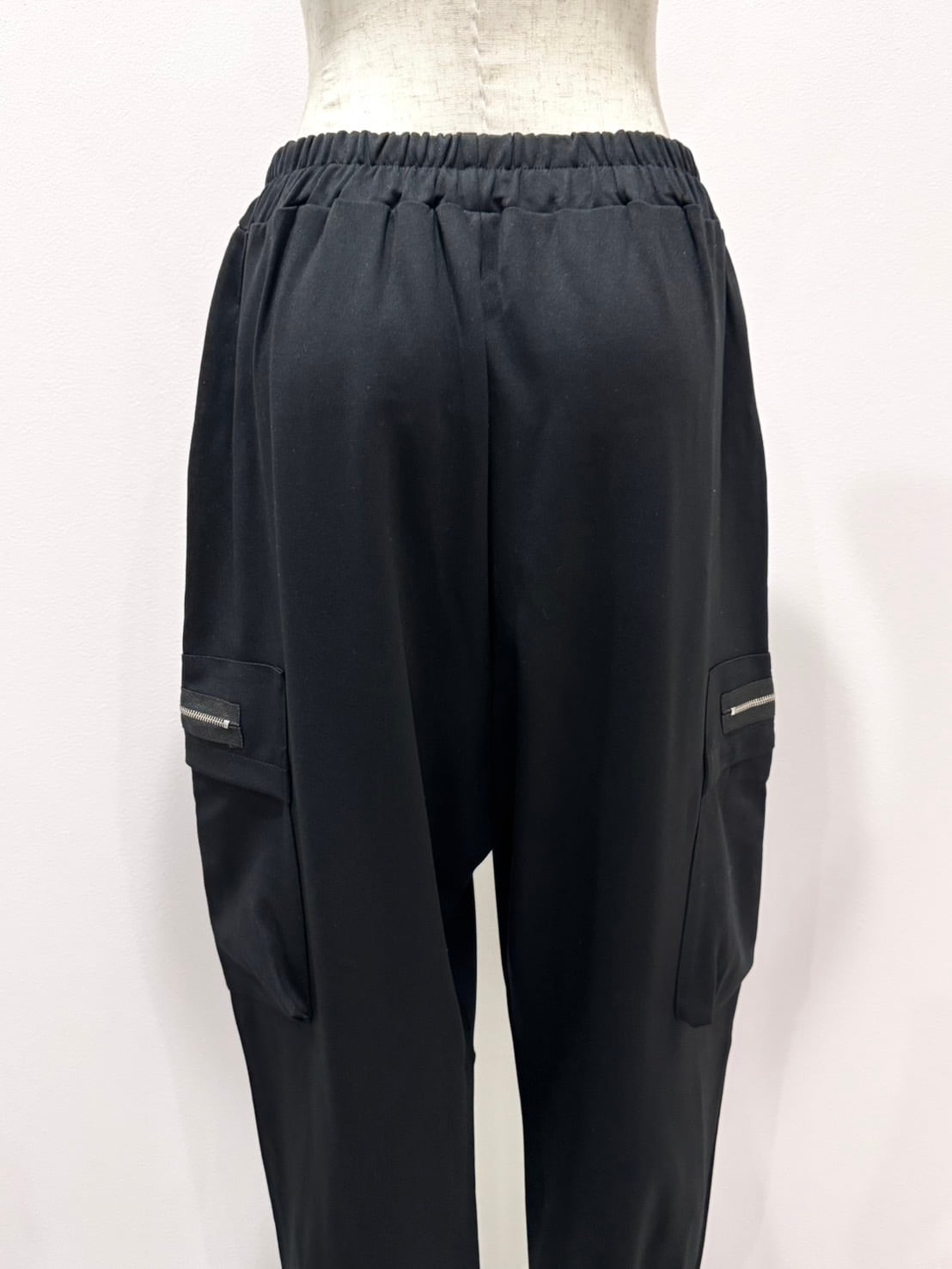 裾はリブ仕上げでブーツにもピッタリな大人サルエルカーゴパンツです
