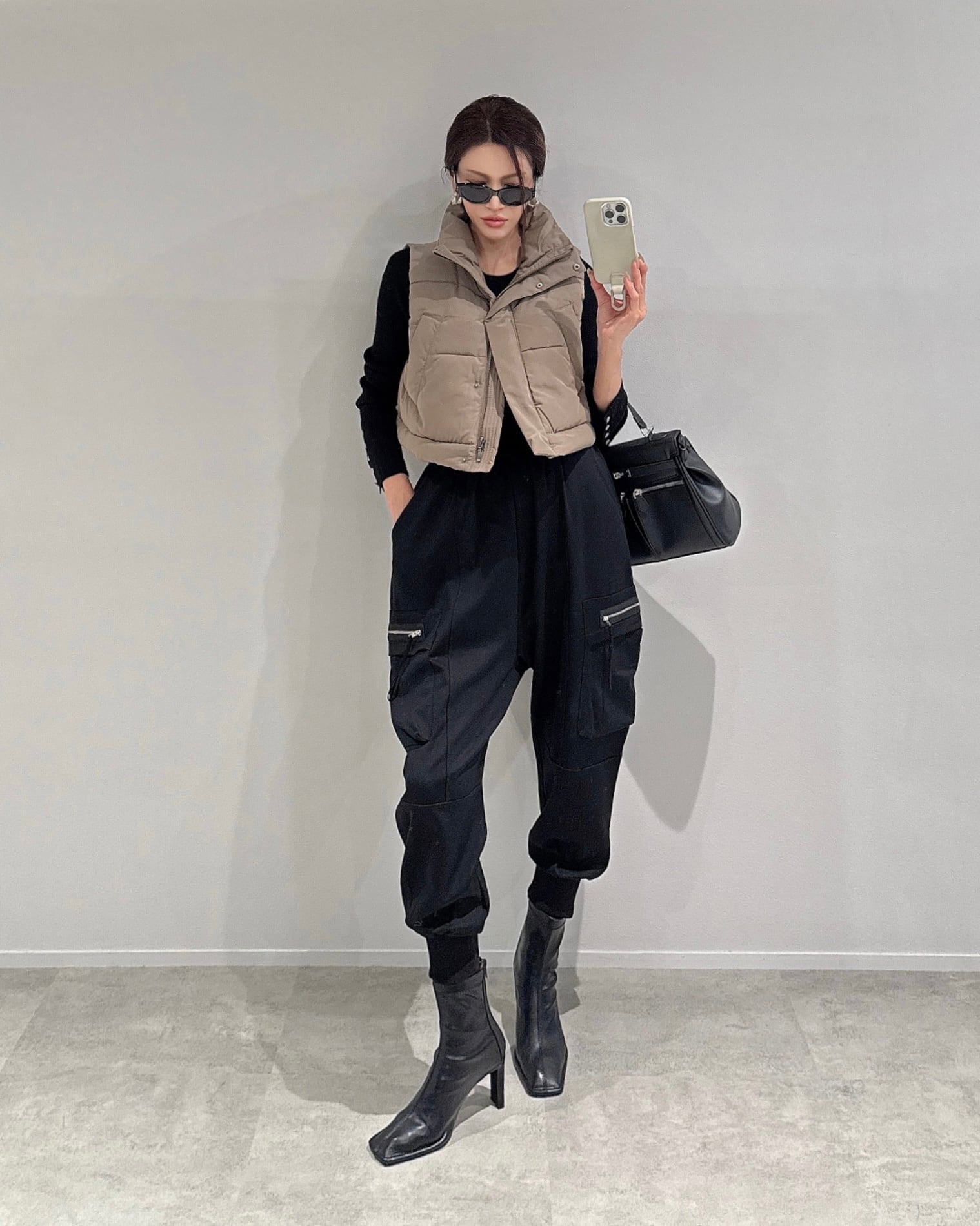short×long/2wayハイスペック中綿SORONAベスト/モカ