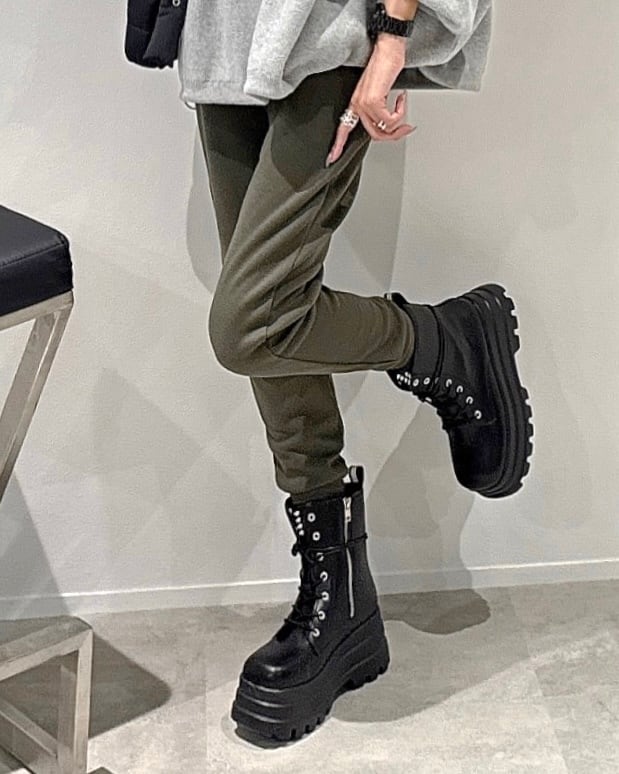 軽量/frontスタッズ厚底square toe lace-up boots
