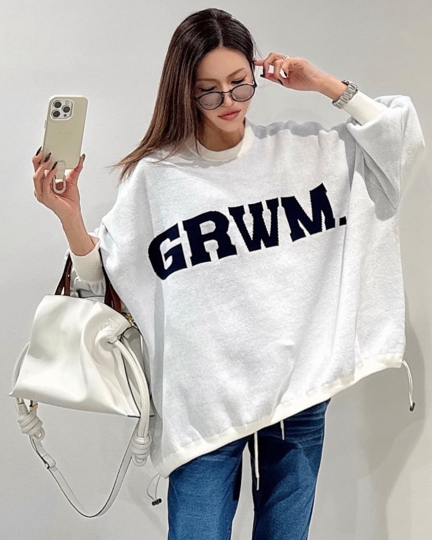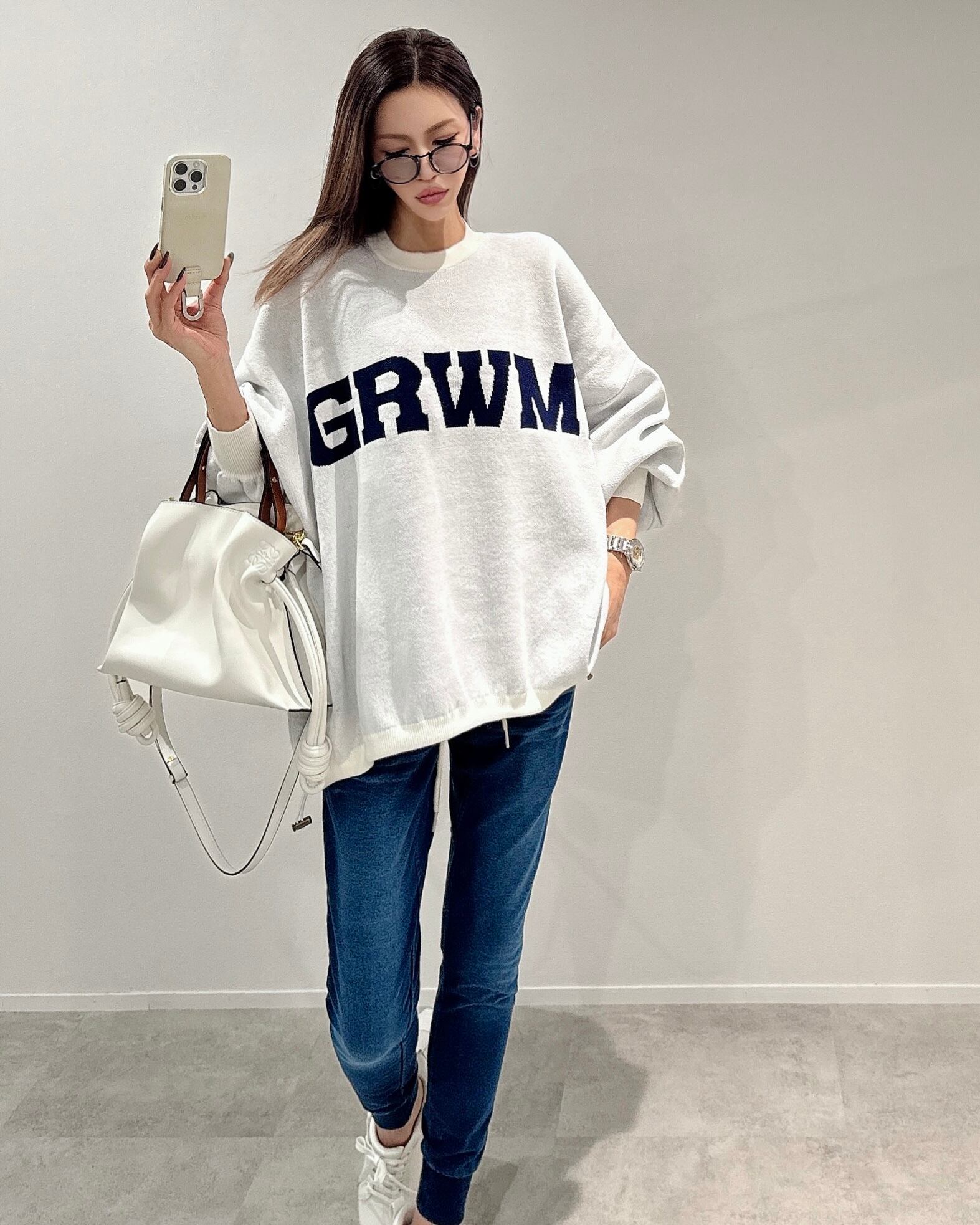2way/GRWMスウェットライクジャカードknit wideプルオーバー /ホワイト