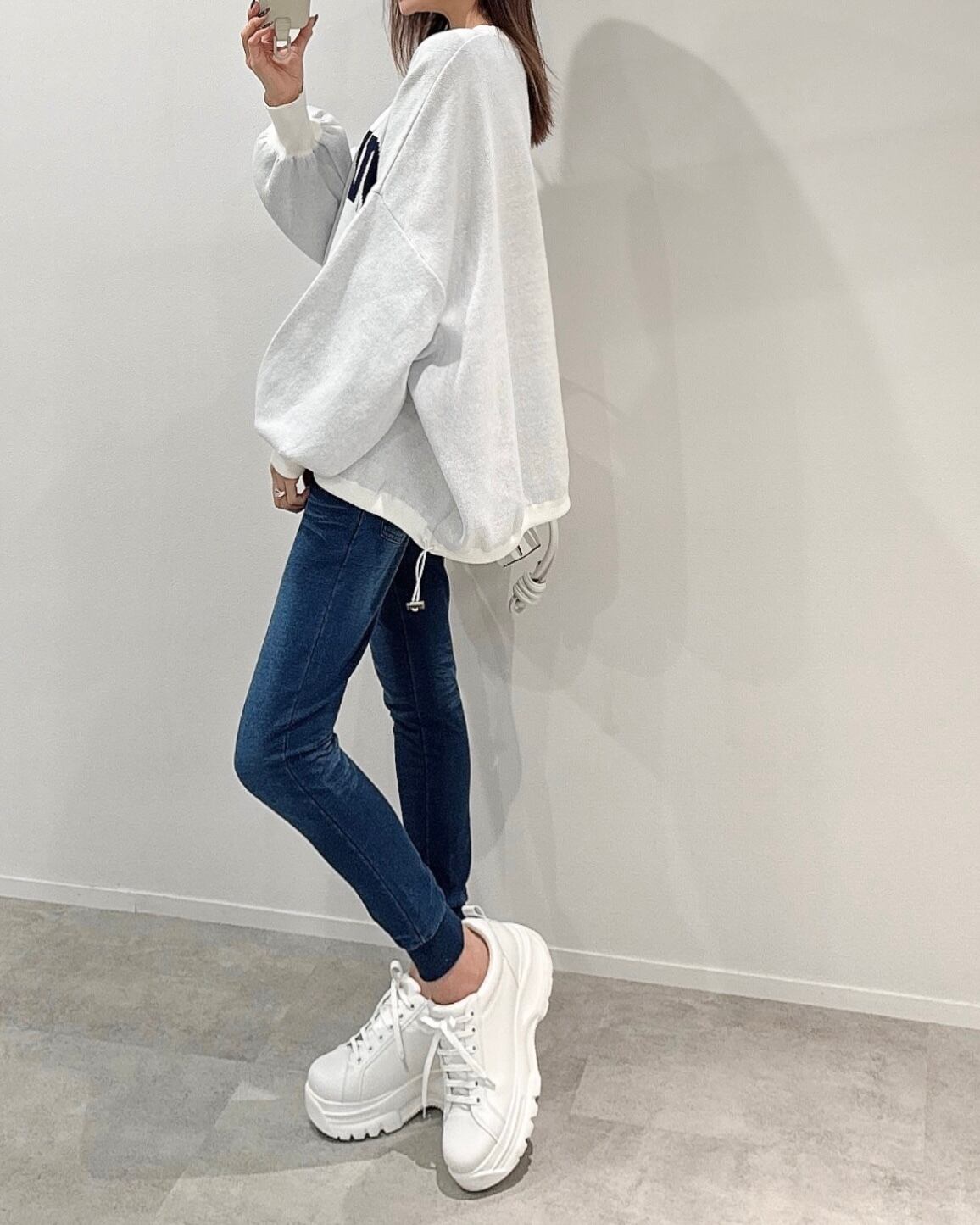 オーバーサイズのボディとドロップショルダーで程よいルーズ感を演出