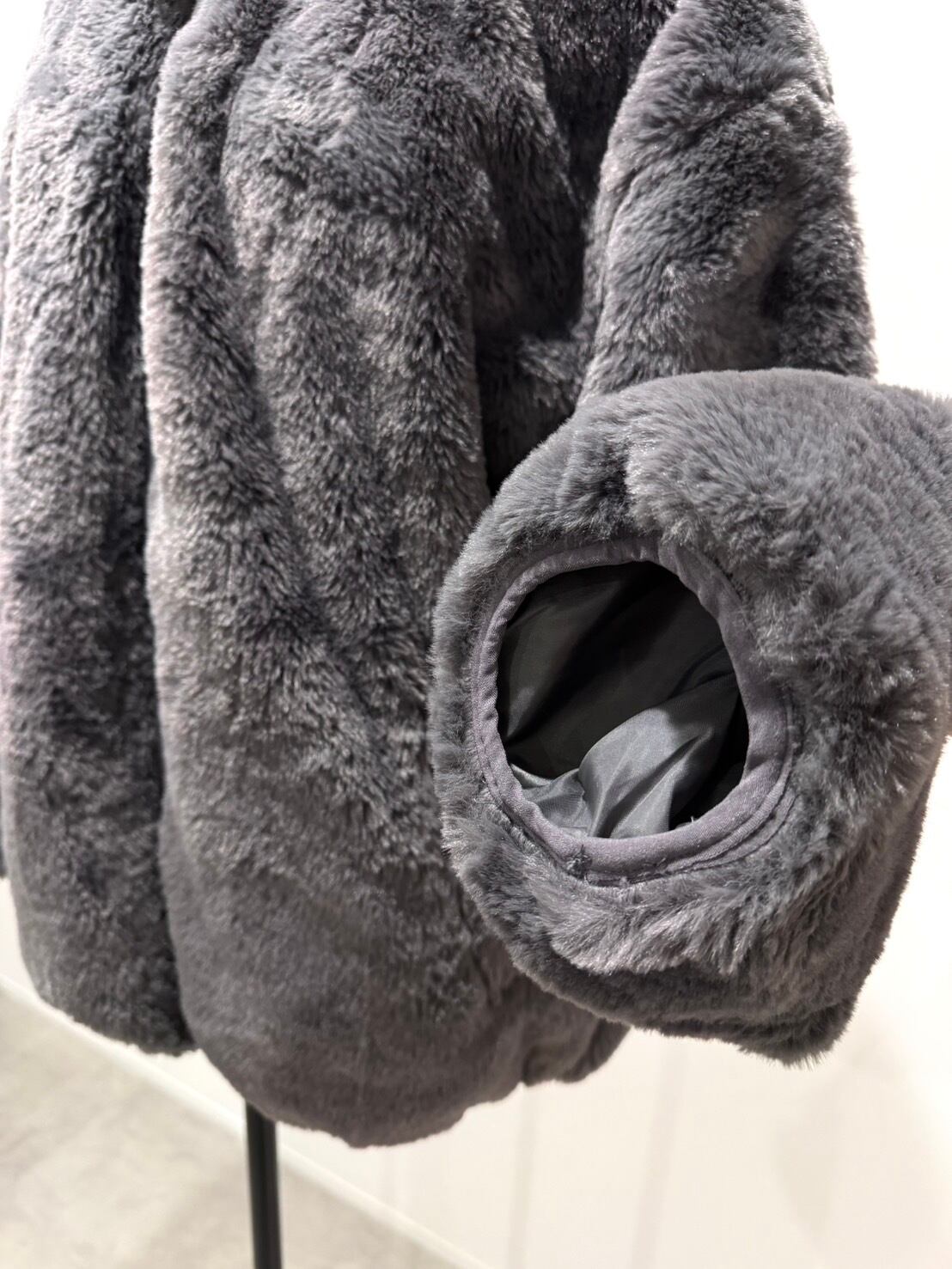 【 追加分 】ラビット風エコファースタンドブルゾン/チャコール