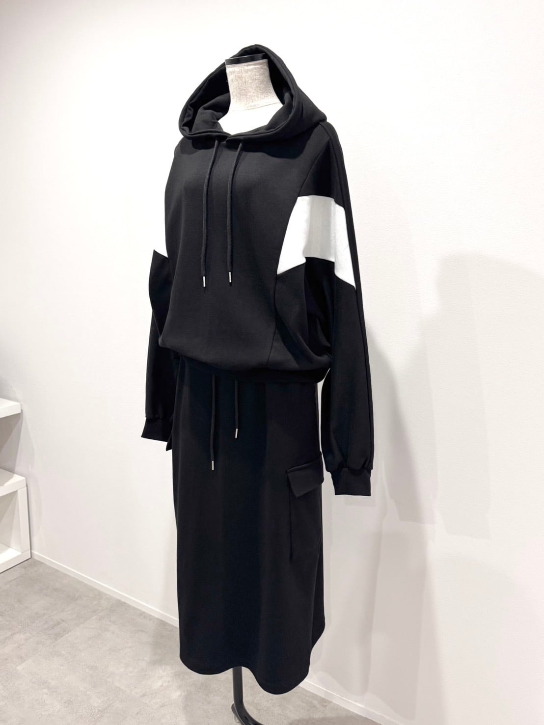 配色ドルマンパーカー×カーゴAラインスカート/スウェットセットアップ