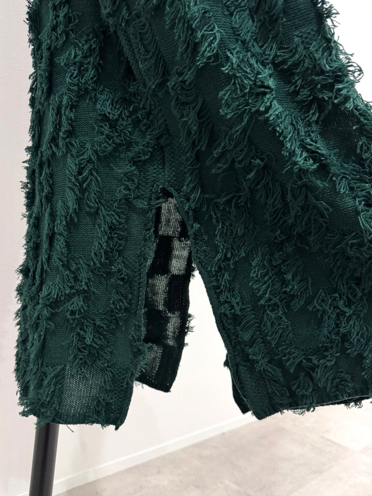 ボリュームsleeveアシメフリンジknit×フリンジlong knit SK/セットアップ/グリーン