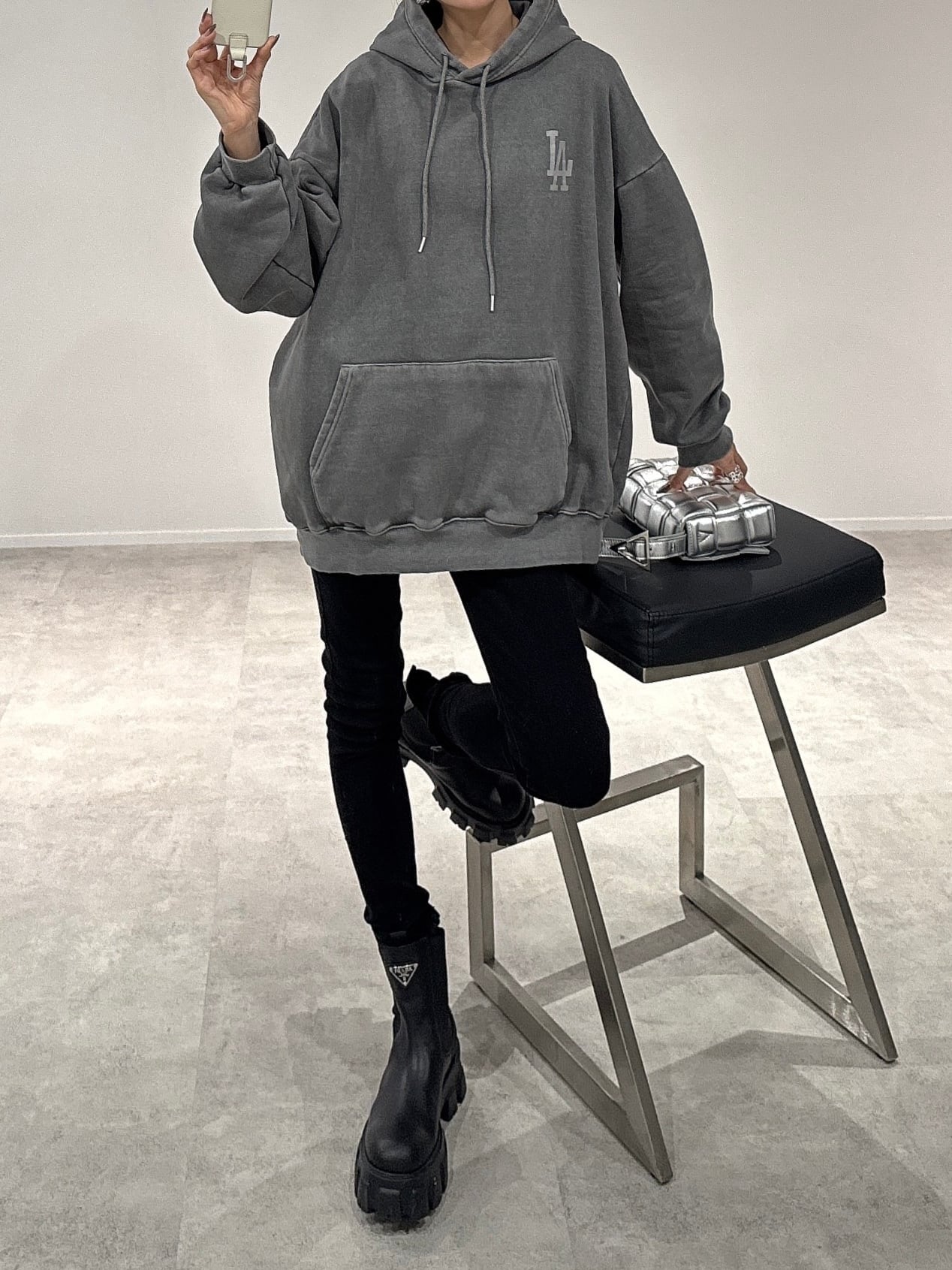 しっかりとした裏ボア起毛のついた肉厚生地のピグメント加工パーカーです