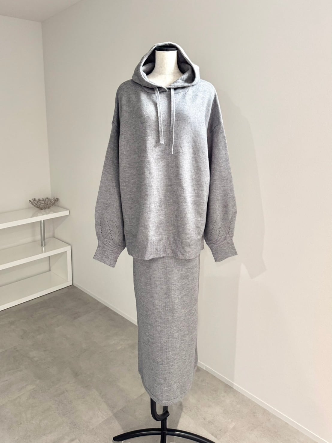 オーバーknitパーカー×タイトknit SK/セットアップ/グレー