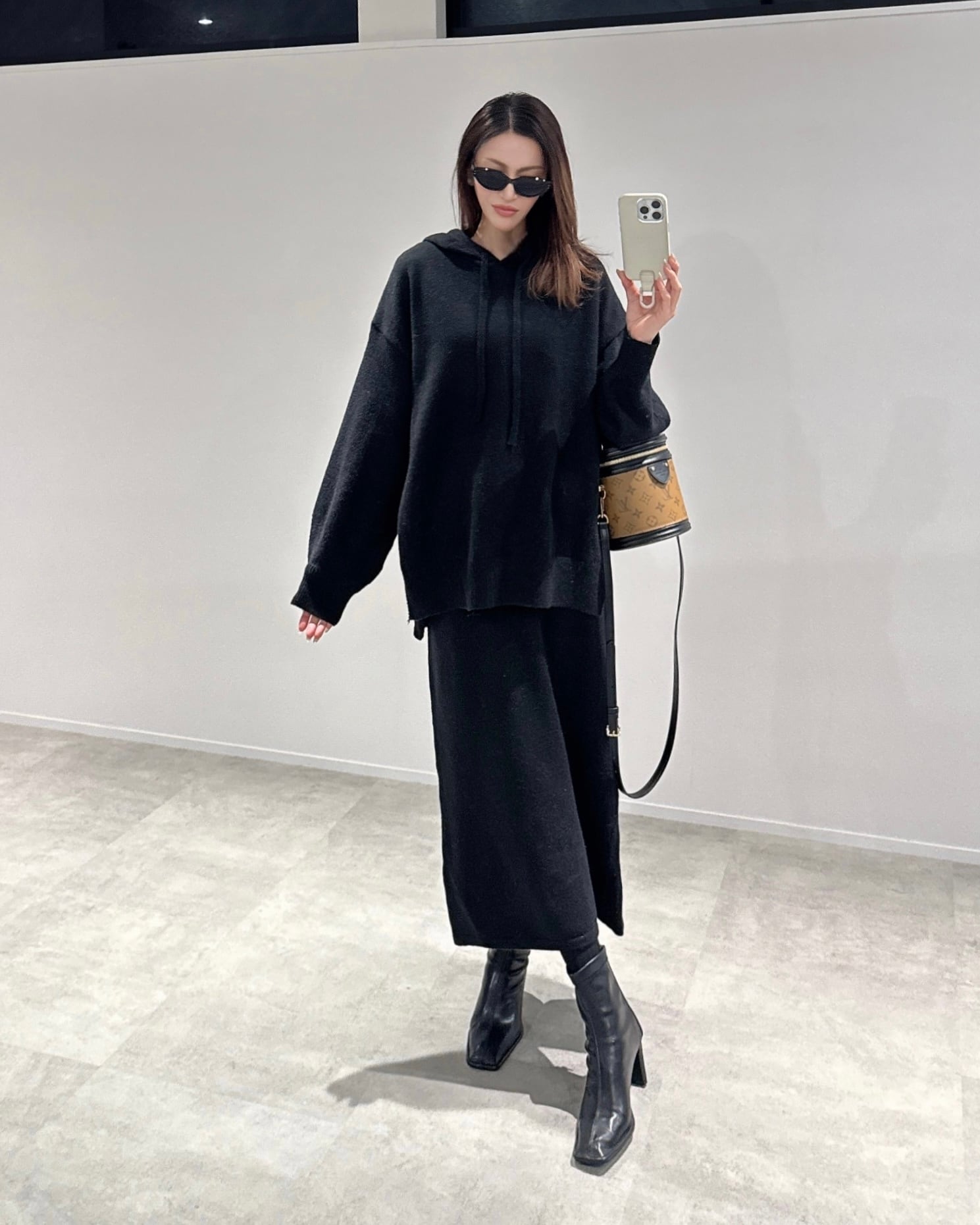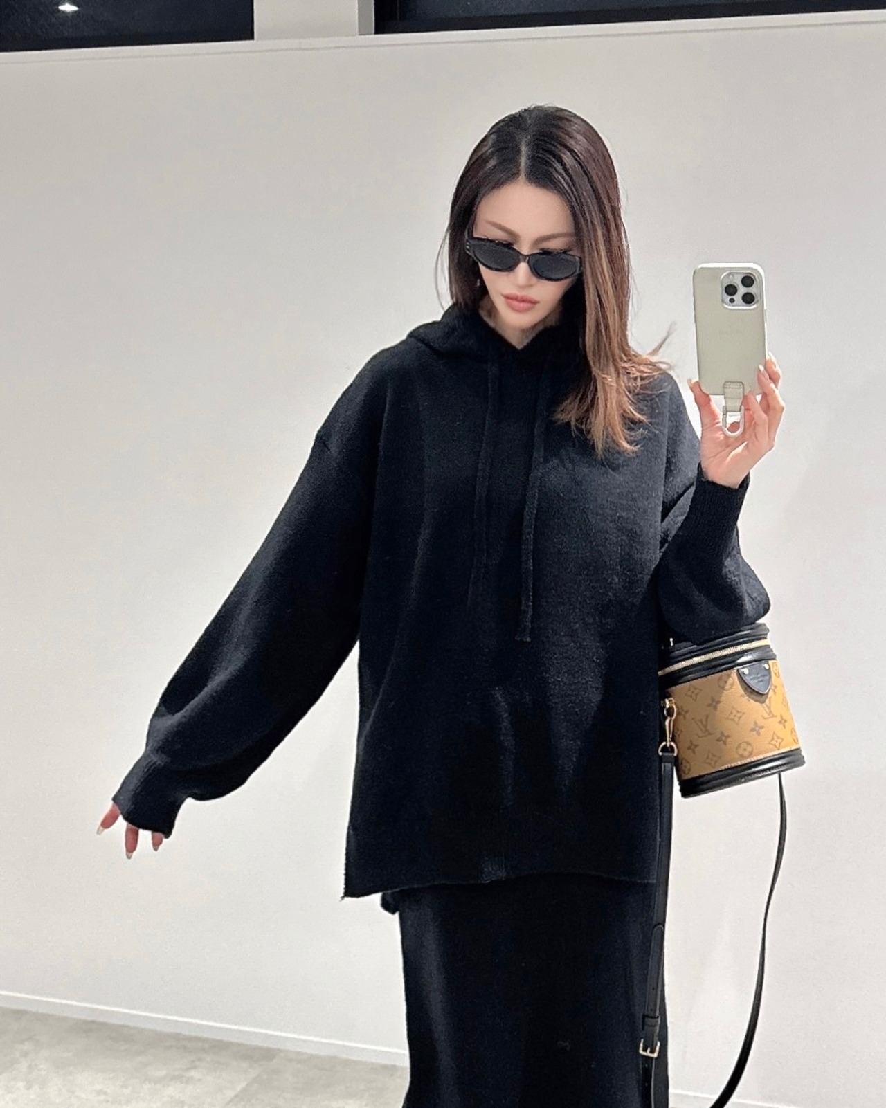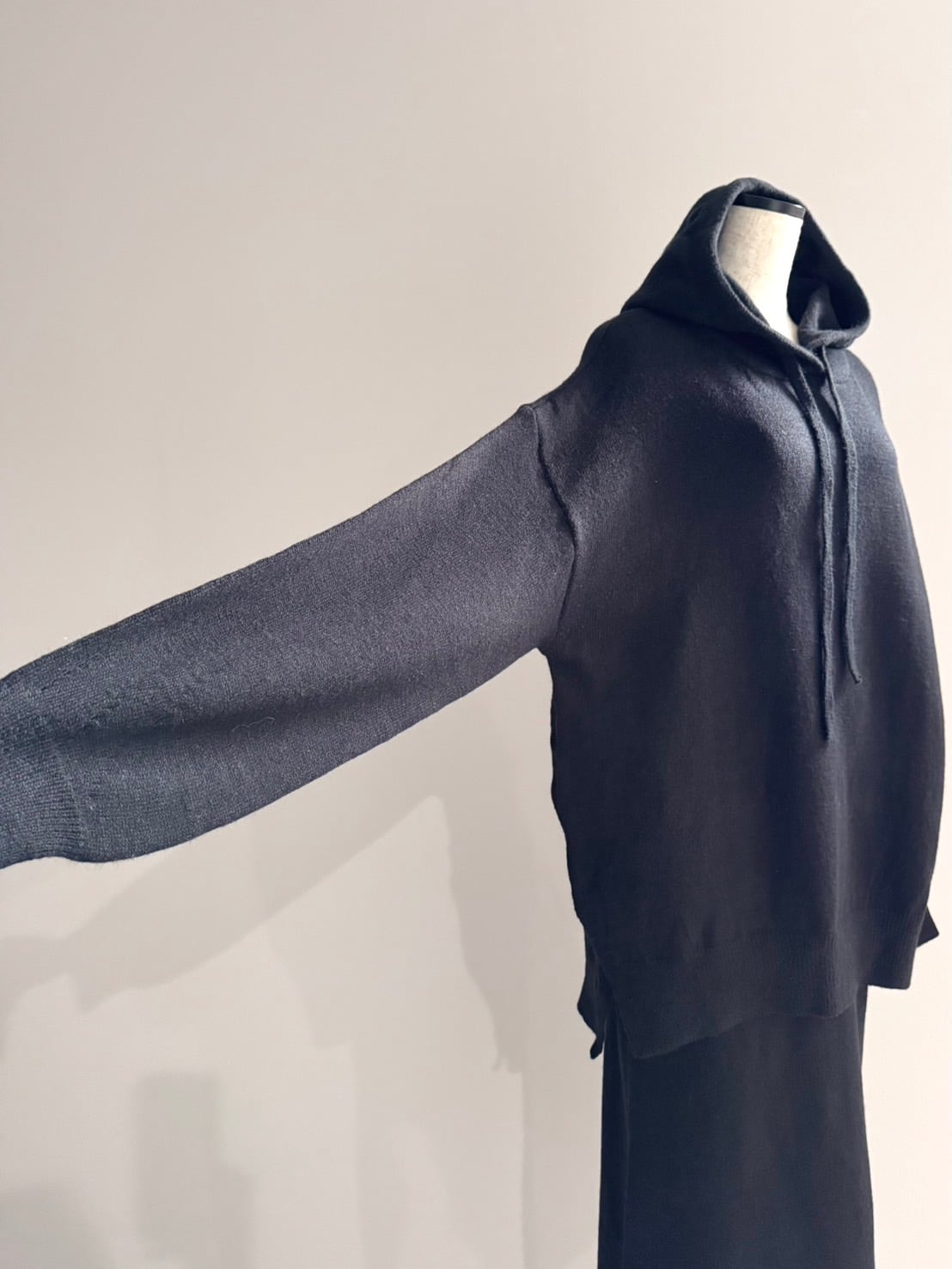 オーバーknitパーカー×タイトknit SK/セットアップ/ブラック