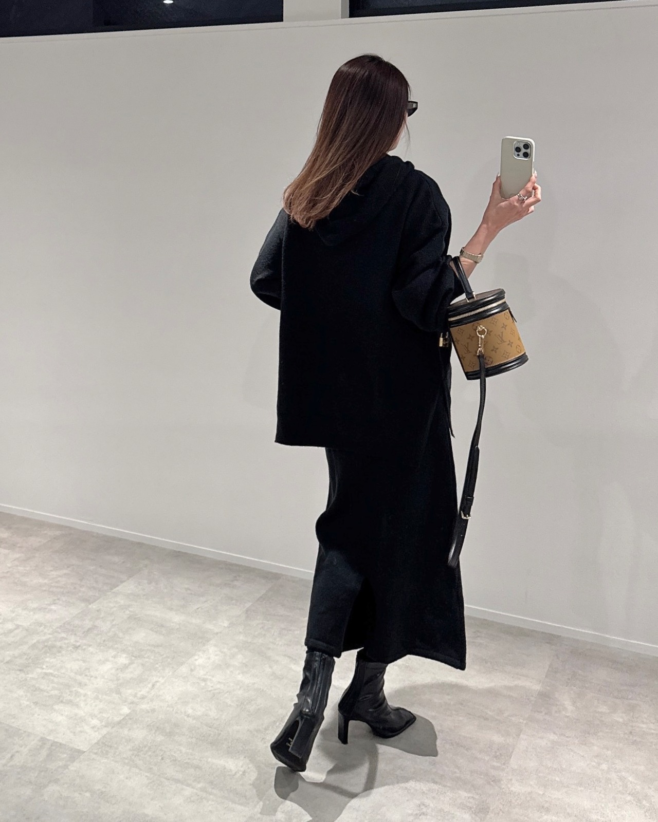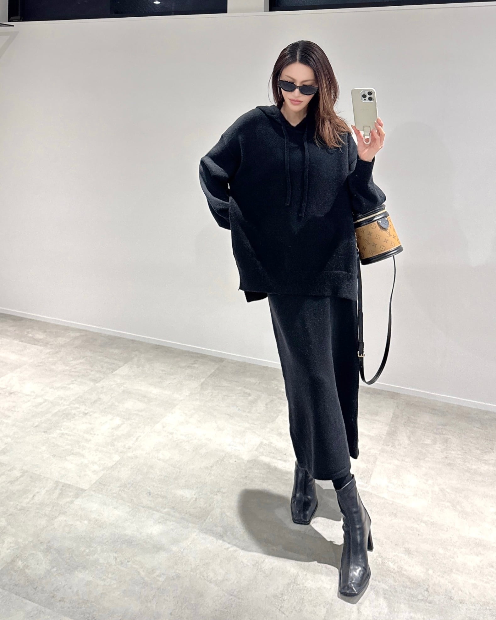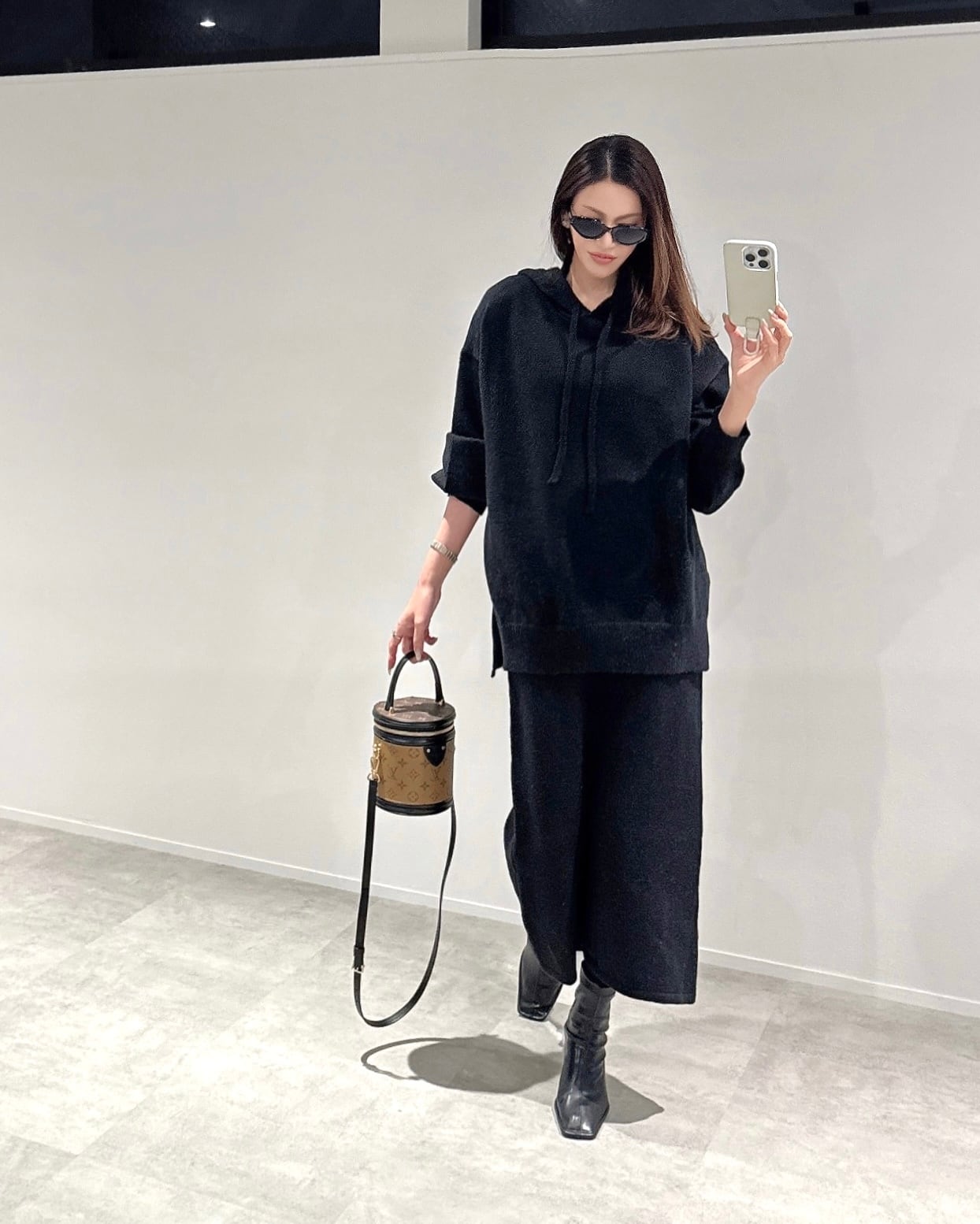 オーバーknitパーカー×タイトknit SK/セットアップ/ブラック