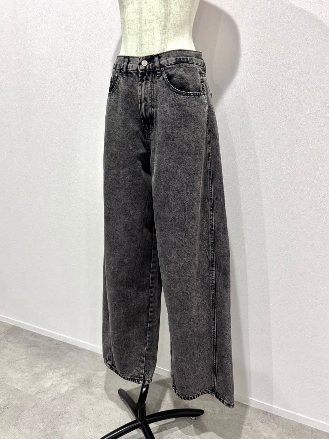 ウォッシュ加工カーブワイドdenim/ブラック