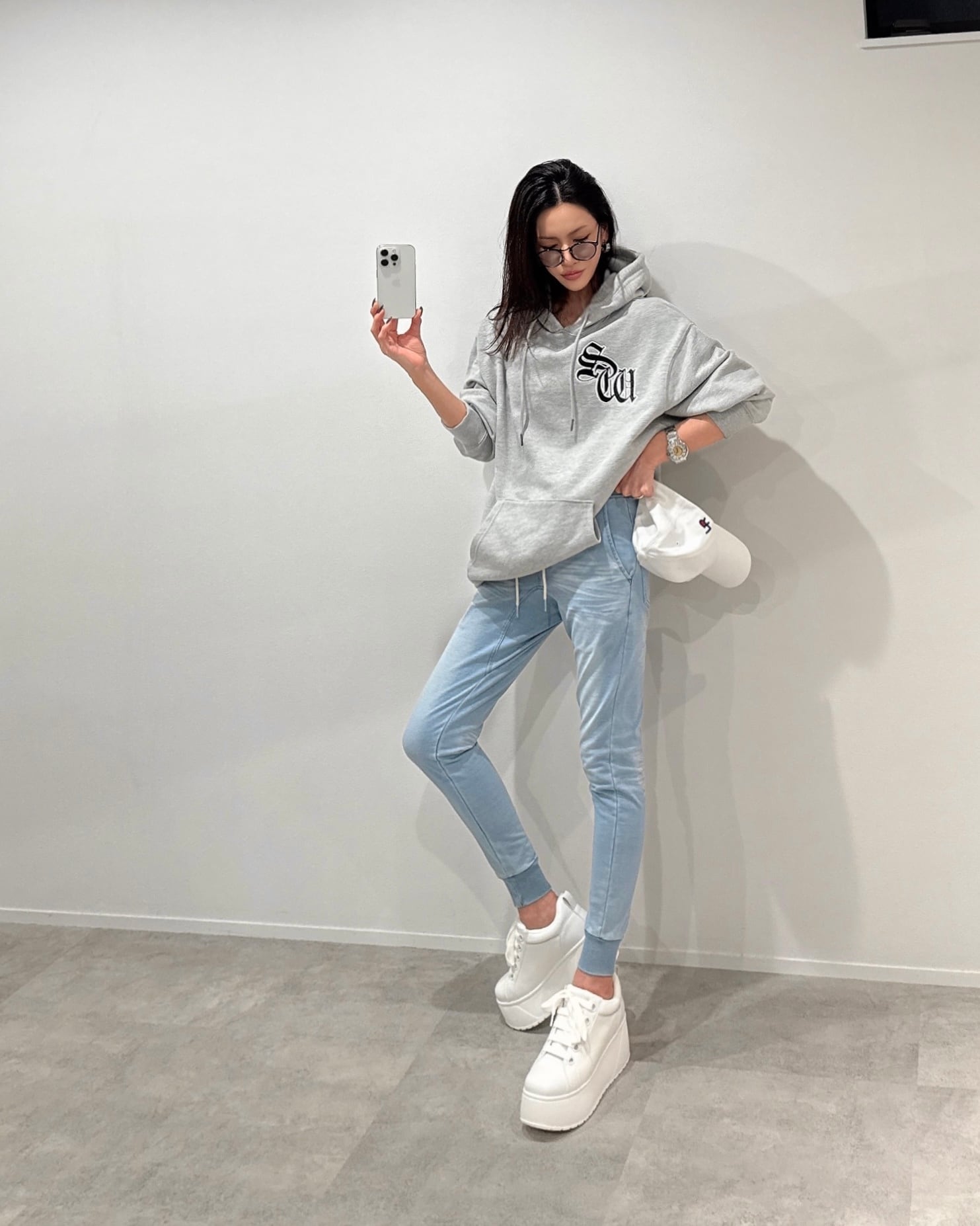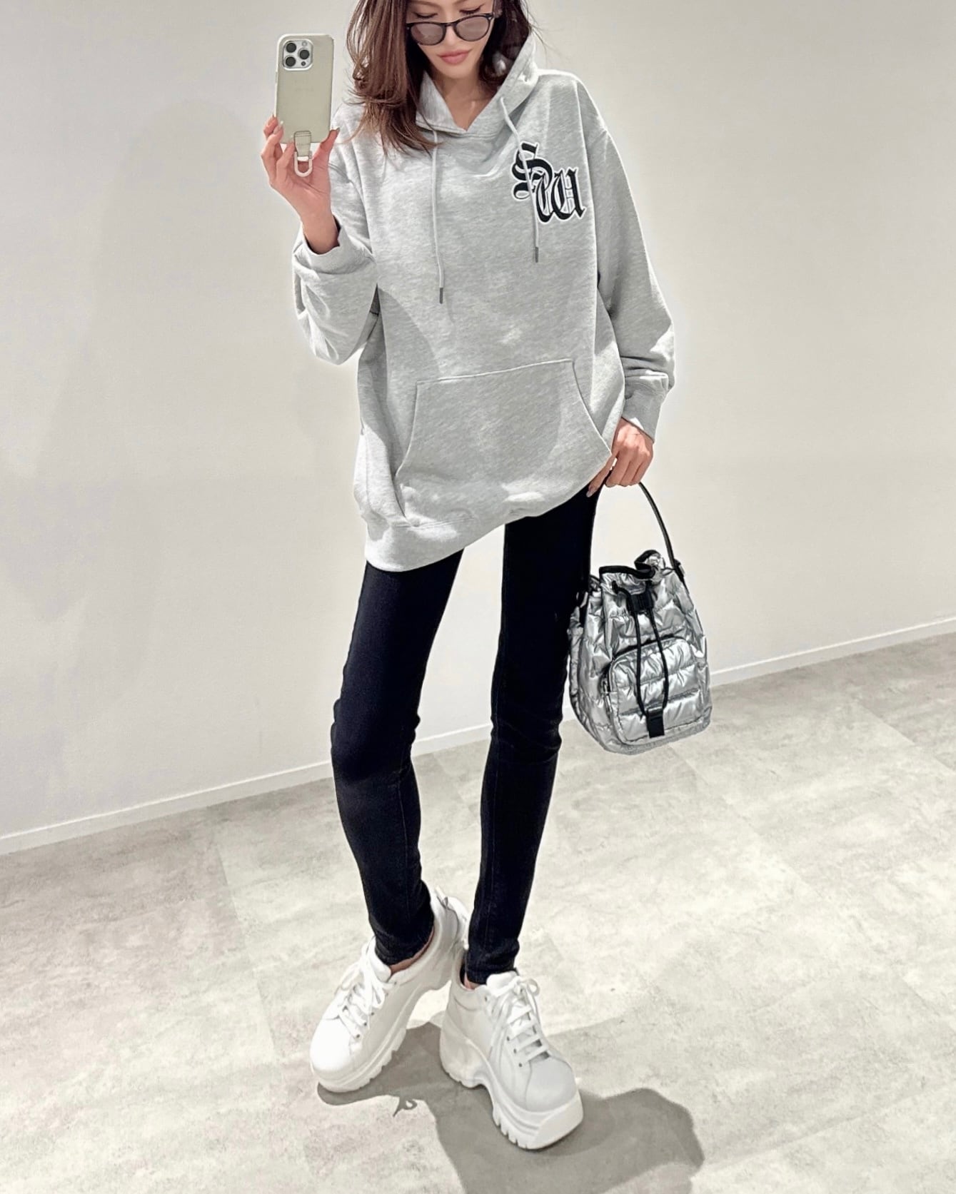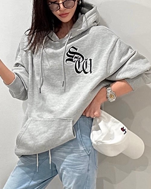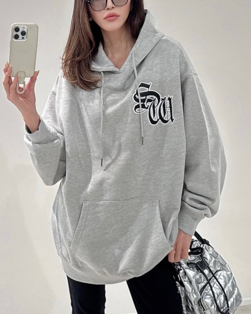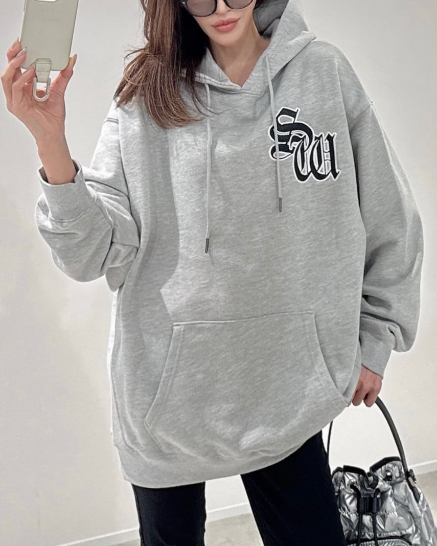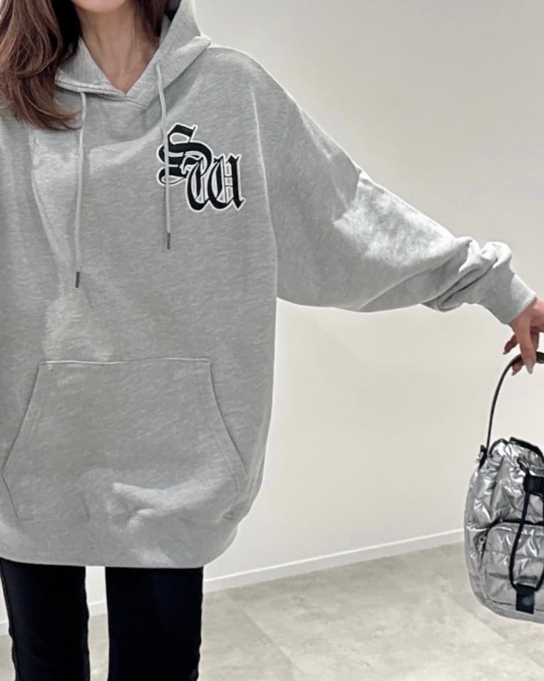 SWサテンワッペンembroidery裏毛ヘビーウェイトプルPK/グレー