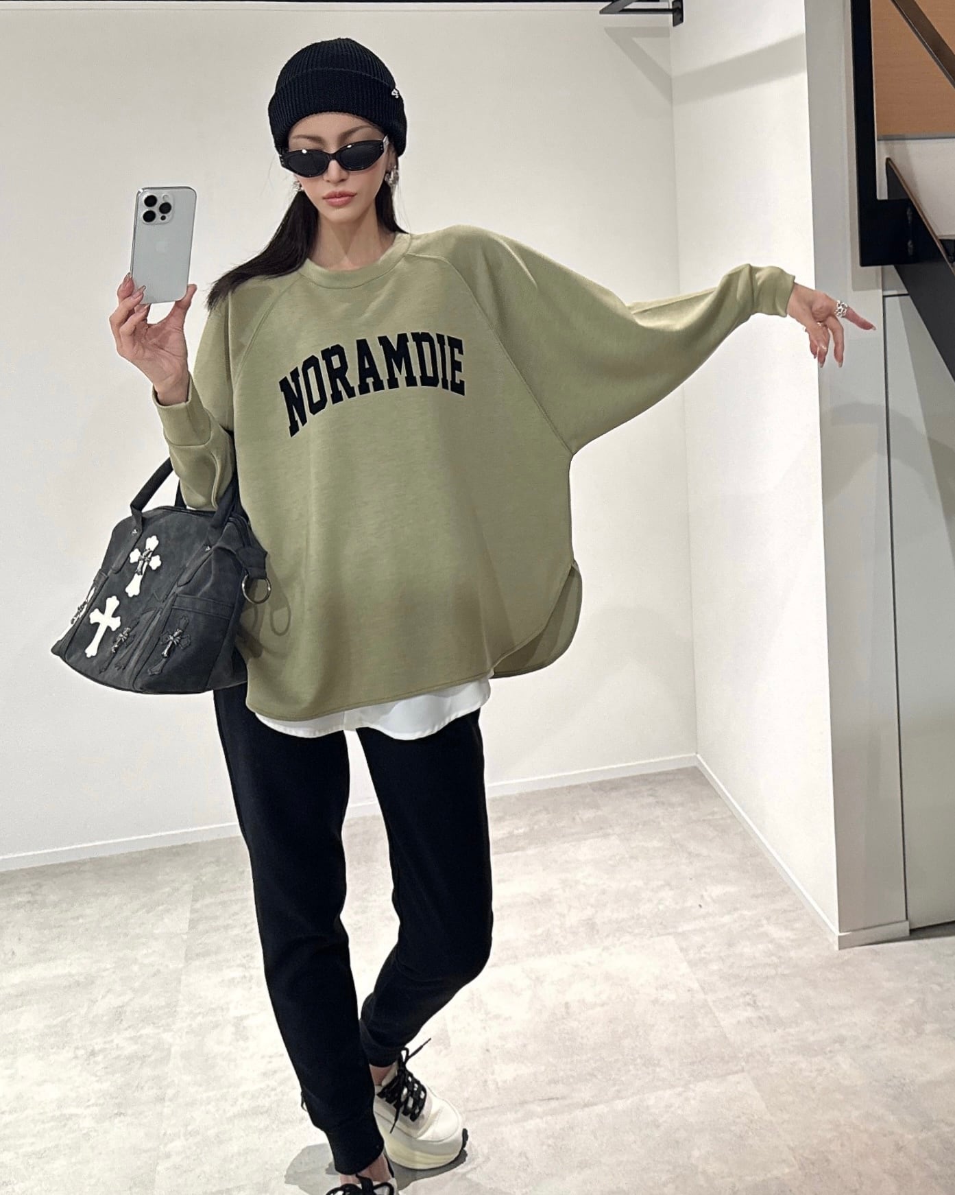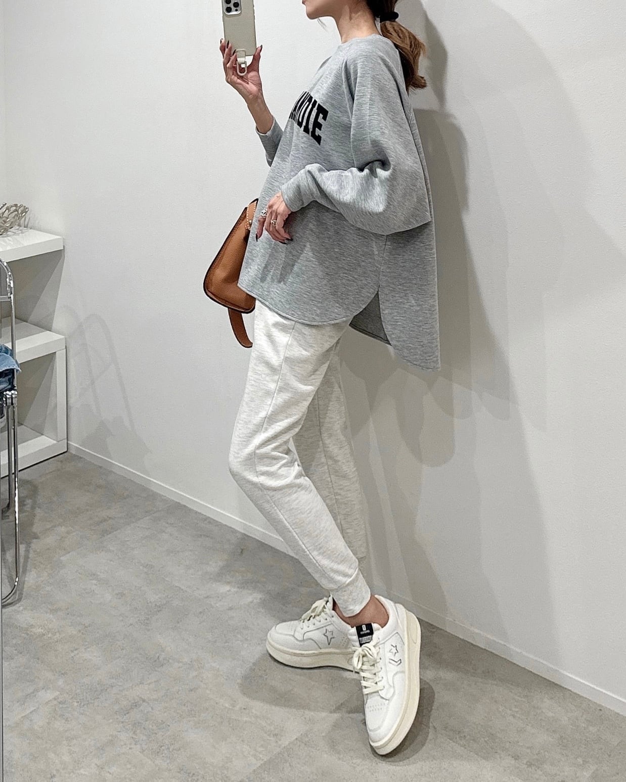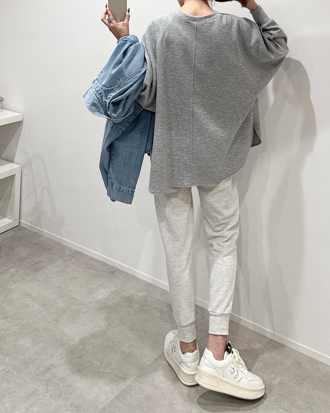 ラグランスリーブなので肩まわりが動かしやすくゆったりした滑らかな着心地