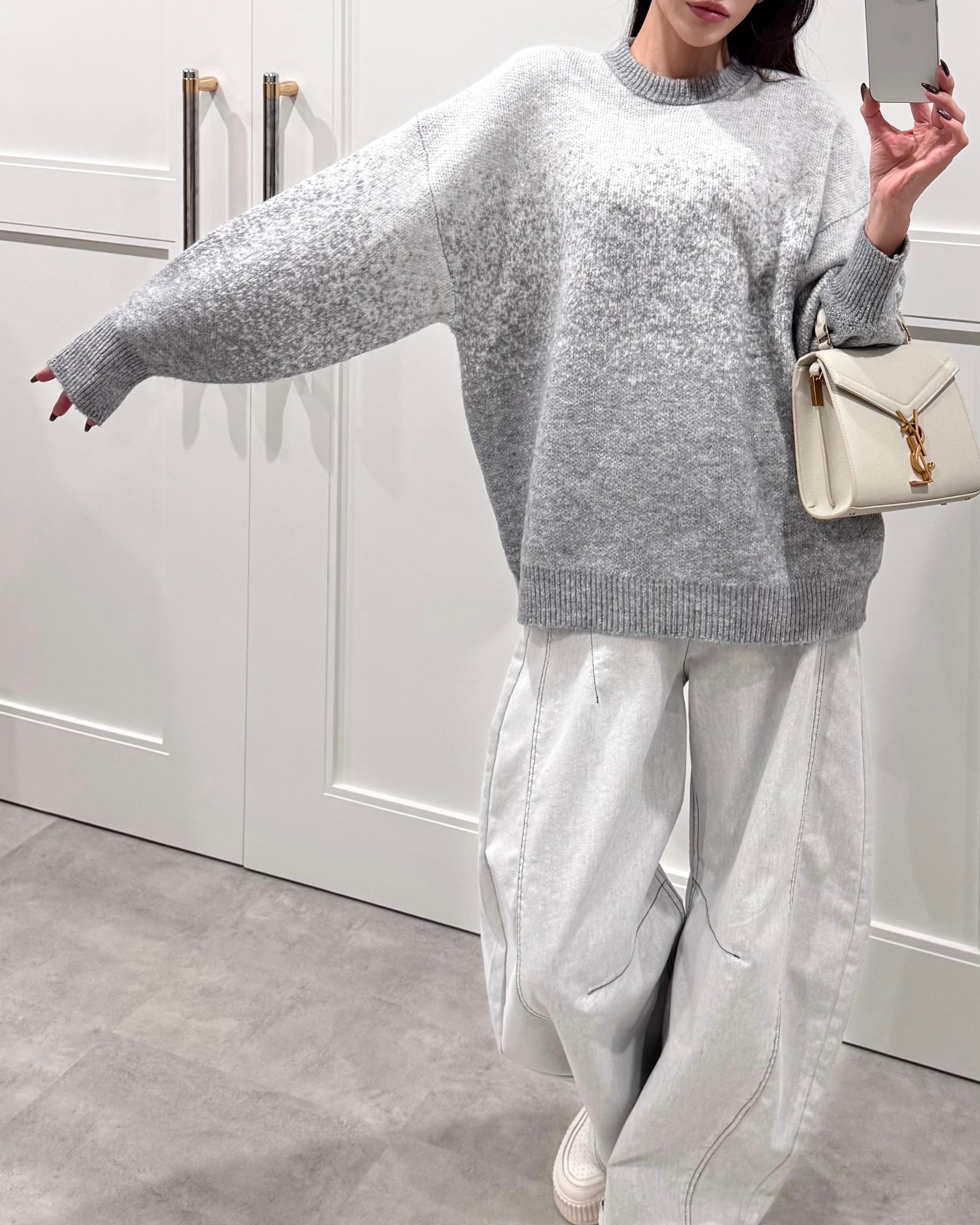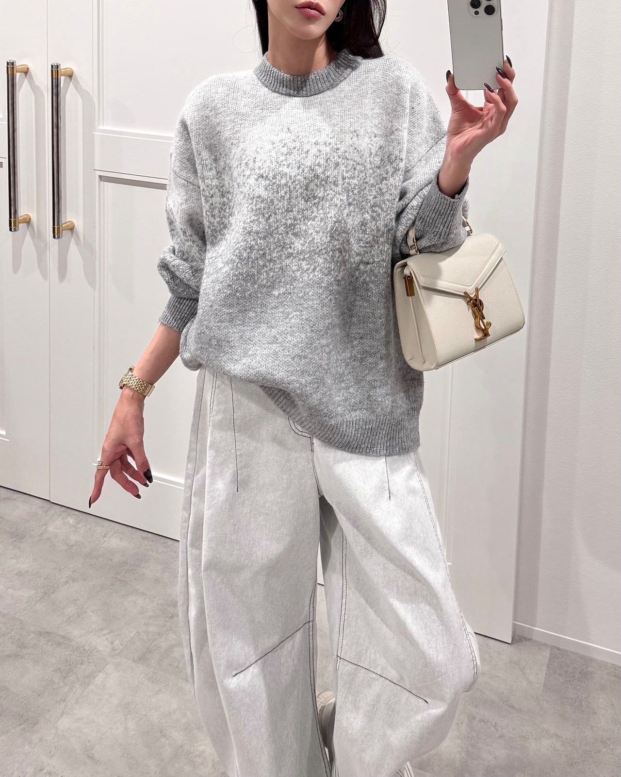 ホワイトグレー×ブラックステッチ
