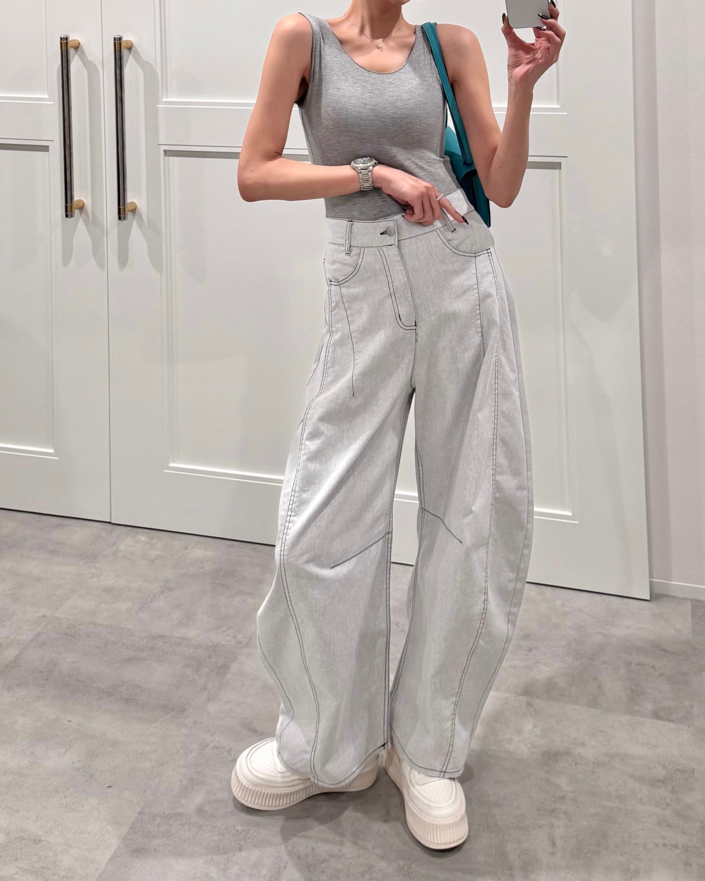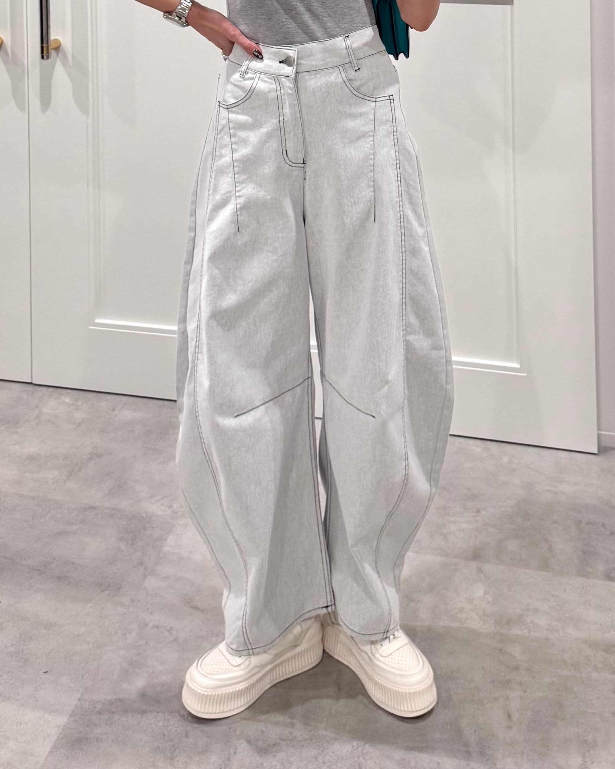 ツイル配色ステッチパレルワイドPT