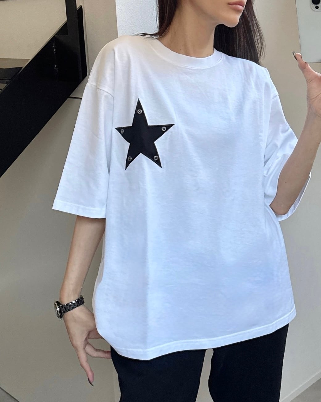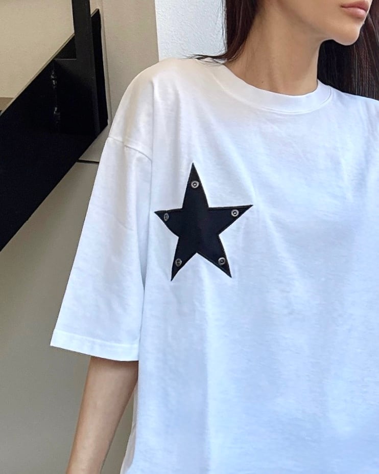 【5〜6月発売】AMELLYON original/STARスタッズワッペン配色Tシャツ/ホワイト
