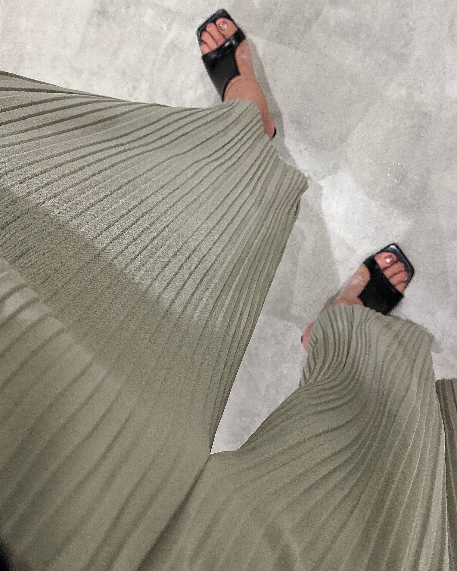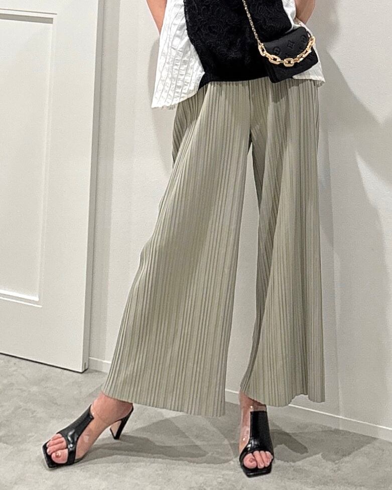 エステルストレッチジョーゼット素材のクロップドプリーツワイドパンツです